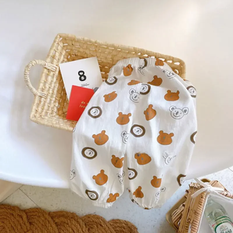 Boys Vintage Floral Printed Sun Protection Pants High Waist Beach Bee Repellent Pants For Children Summer Casual Wear