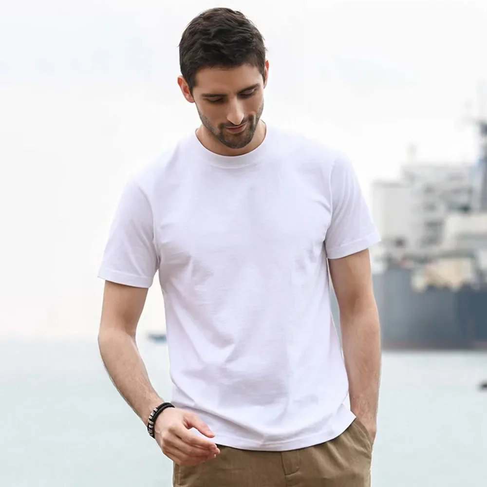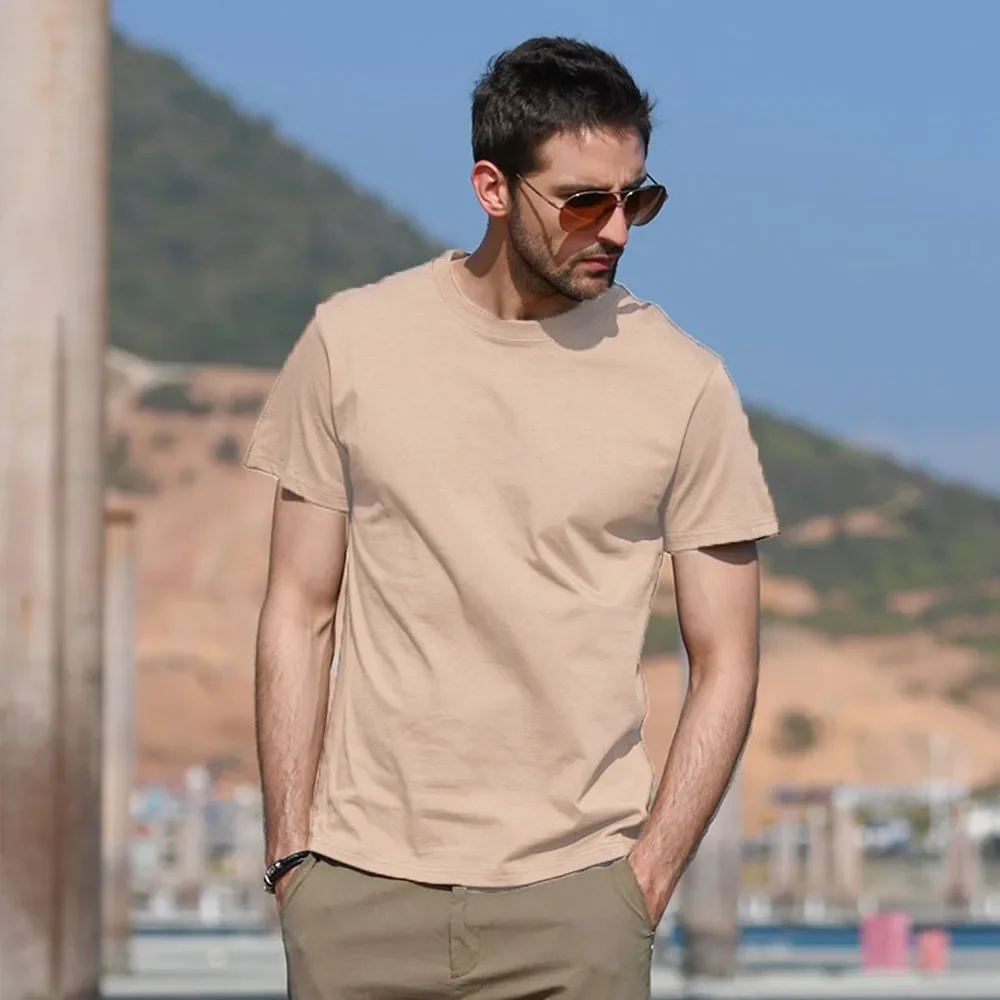 Men’s Round Neck Solid Color Cotton Short Sleeve T-shirt Men and Women Sports Tops Tees Slim Fit Casual Streetwear