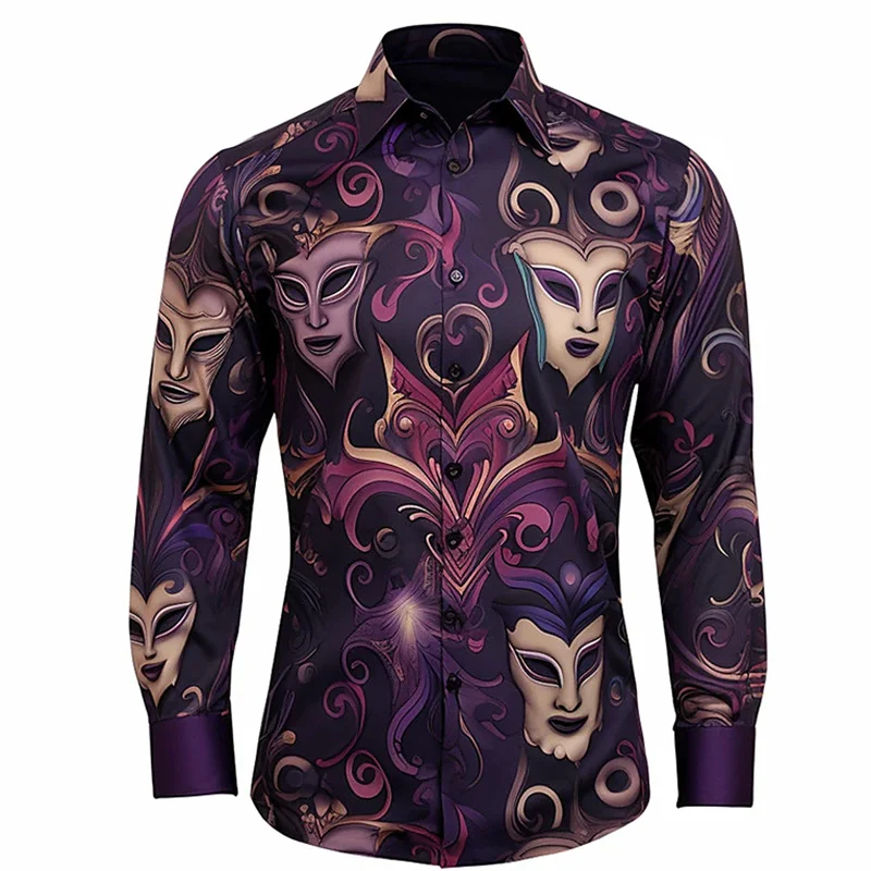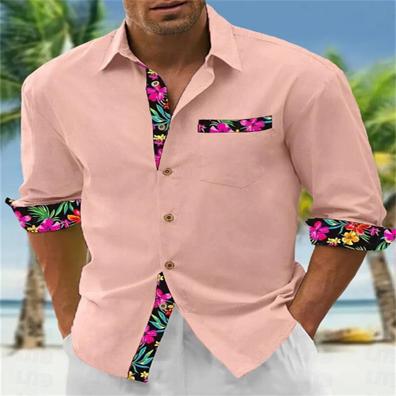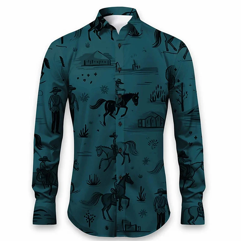 Men’s shirt pattern shirt button print long sleeved clothing for daily outings V-neck fashion designer casual and breathable