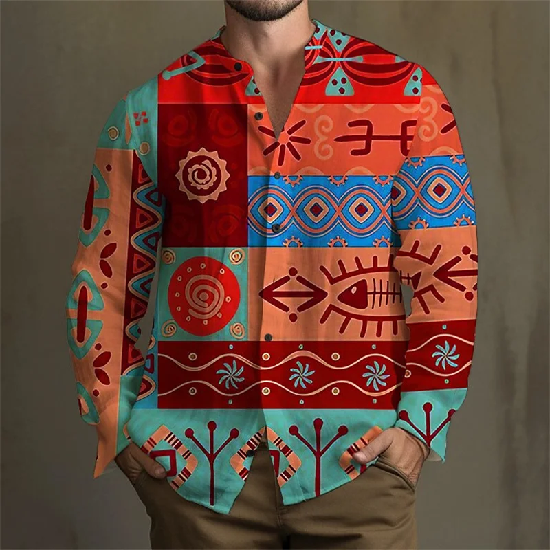 Men’s shirt pattern shirt outdoor street long sleeved printed clothing fashion street clothing designer casual breathable