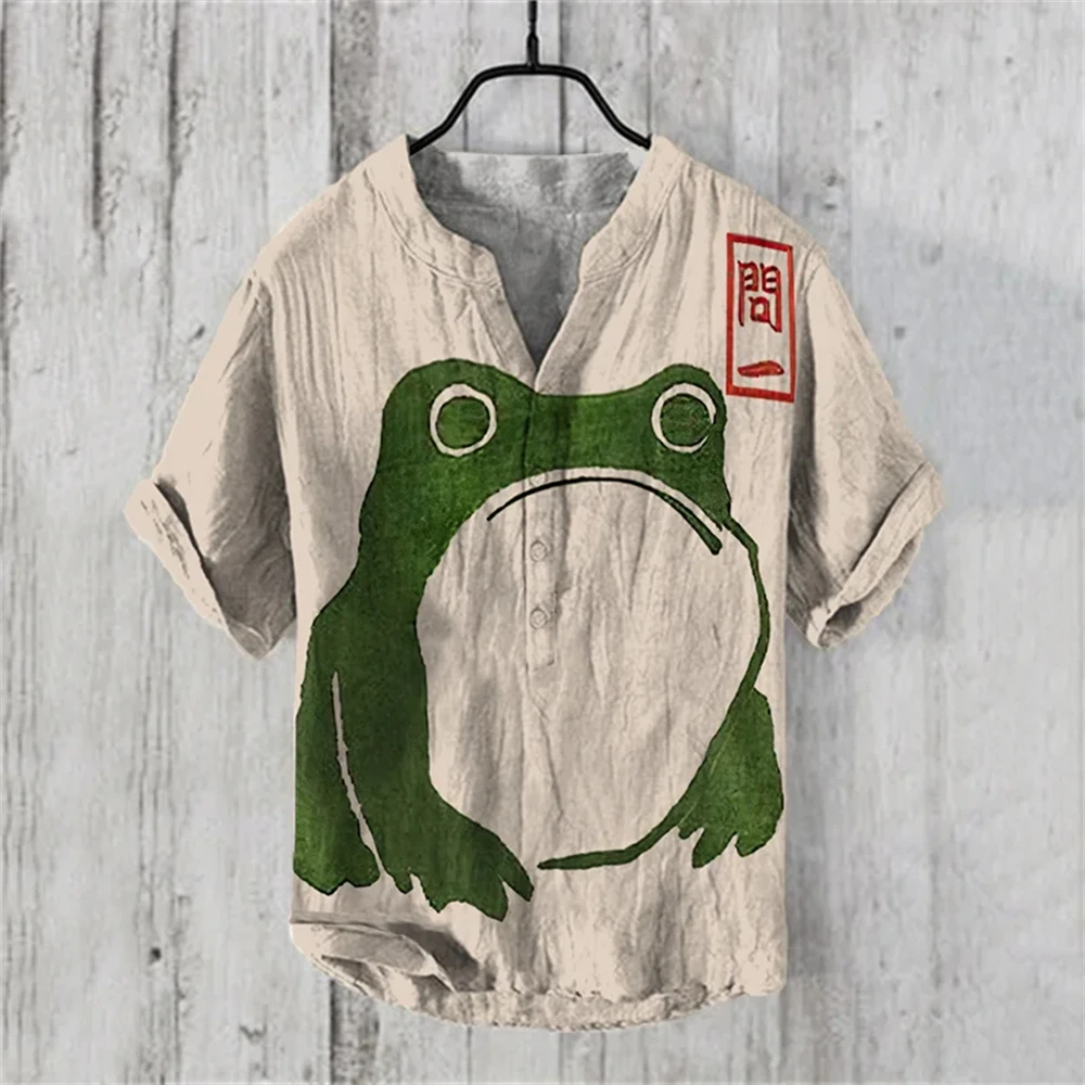 Men’s Short Sleeve POLO Shirt Imitation Linen POLO Shirt Hot Sale Casual Japanese Vintage Hawaiian Vacation Men’s Clothing