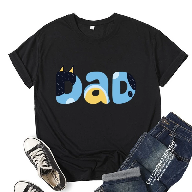 Mum Dad and MINI Little Cartoon print t-shirt Family Matching Clothes Father and Son Kid Clothes daddy Baby T Shirt Short Sleeve