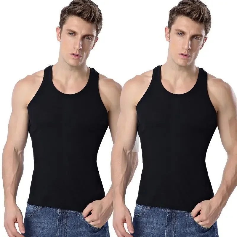 Pure Cotton Slim Fit Sports Fitness Tank Top for Men Summer Tight Elastic Base Layer Shirt Elderly Men’s Underwear Home Clothes