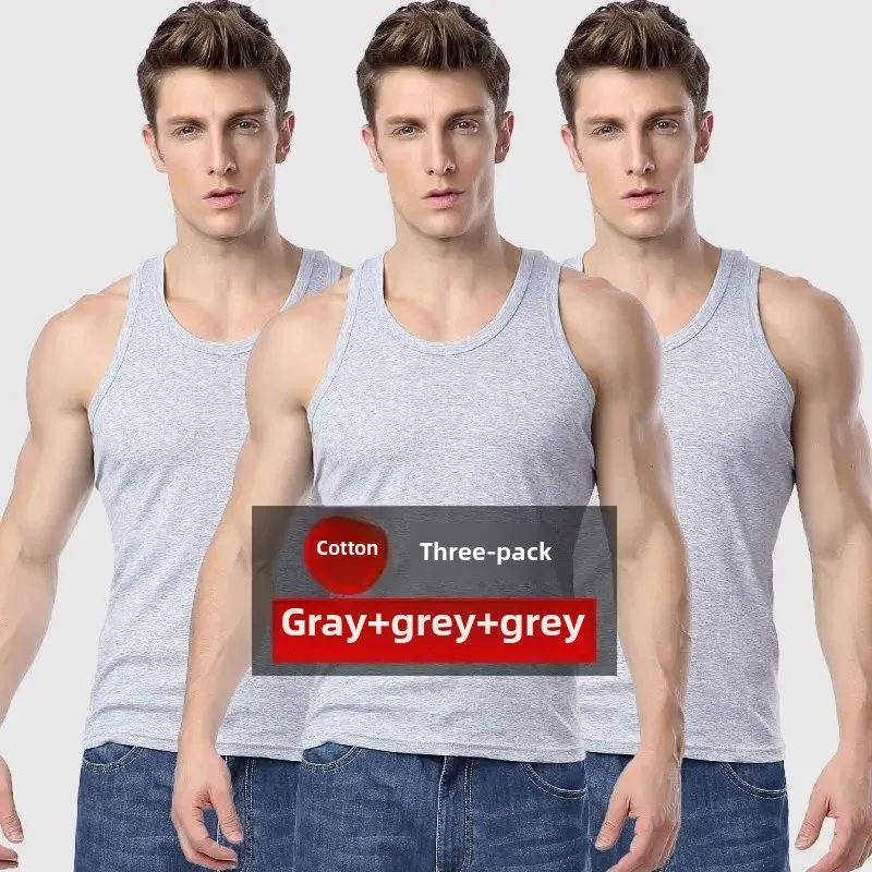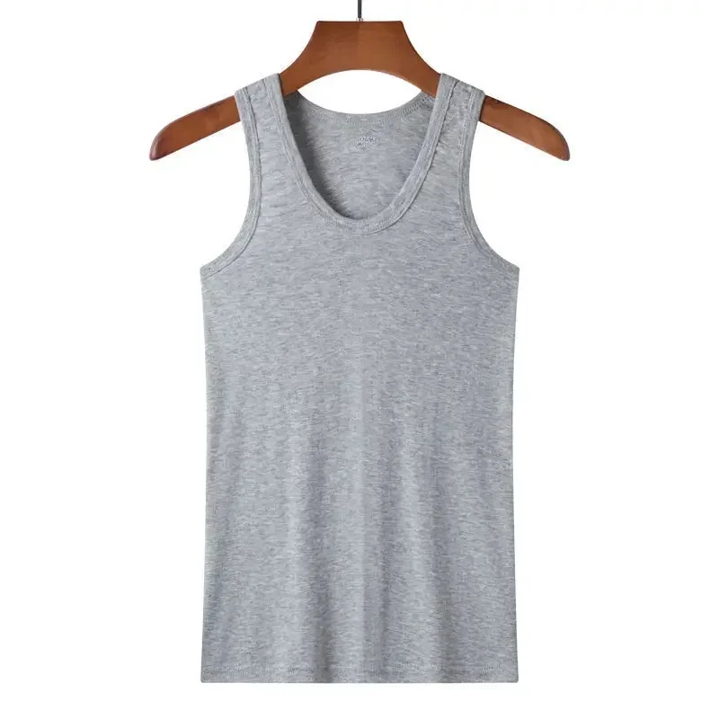 Pure Cotton Slim Fit Sports Fitness Tank Top for Men Summer Tight Elastic Base Layer Shirt Elderly Men’s Underwear Home Clothes