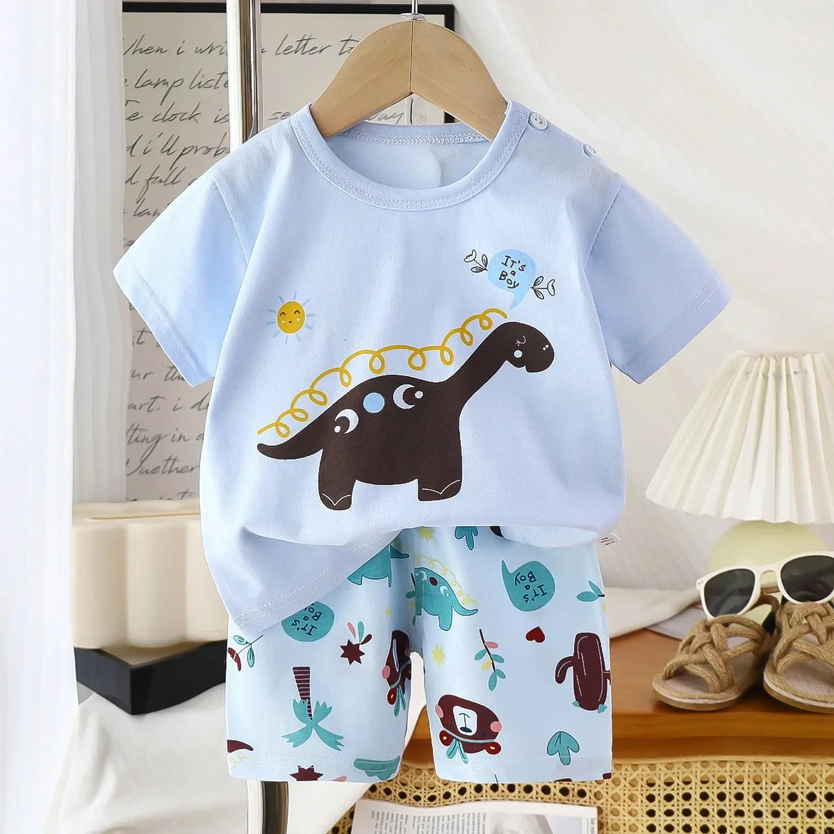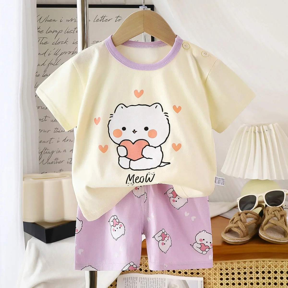 Pure Cotton Short Sleeve Children’s Outfit Thin Baby Boys Summer Clothes Girls Clothing Set Selected Quality Kids’ Apparel