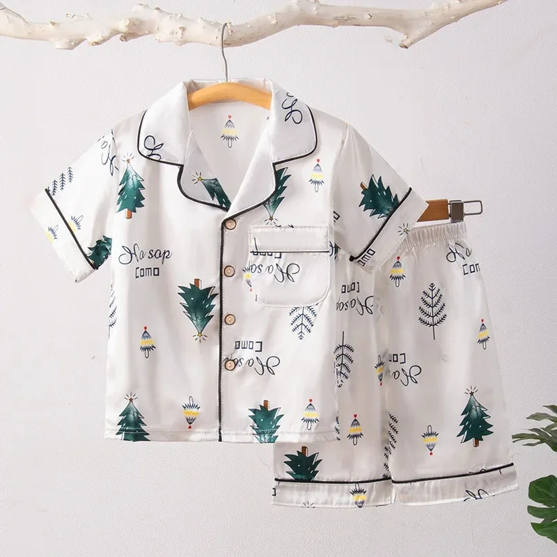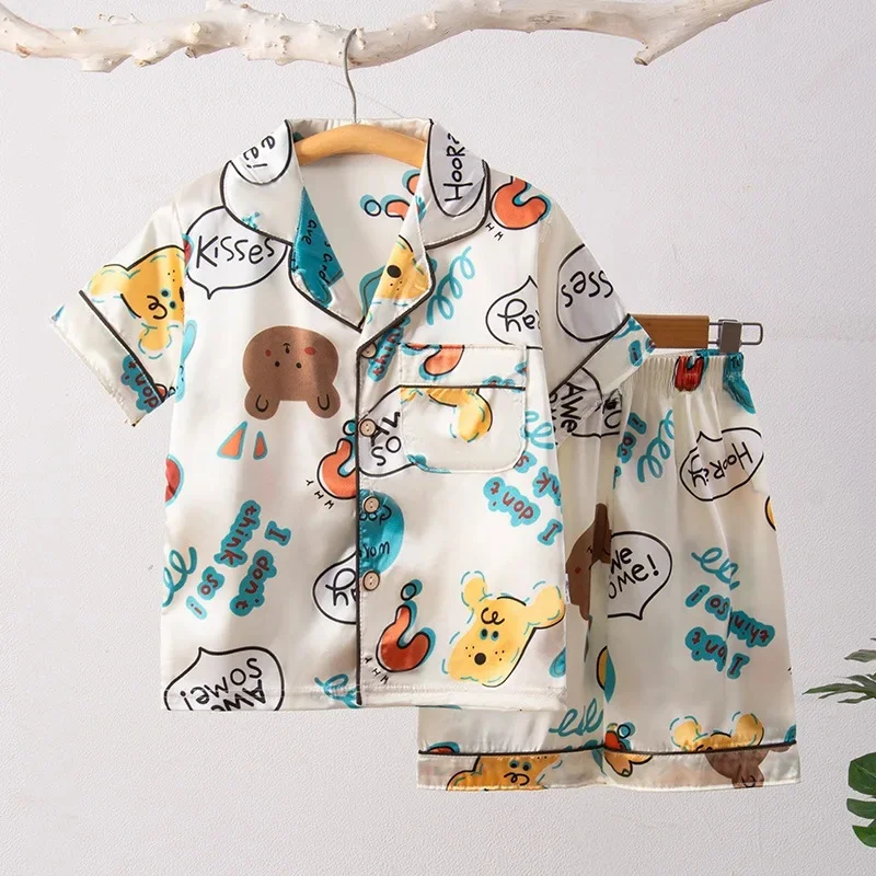 Children’s Home Clothes Summer Thin Section Boys And Girls Short Sleeves Seven Point Pants Air Conditioning Clothes 3-8 Children