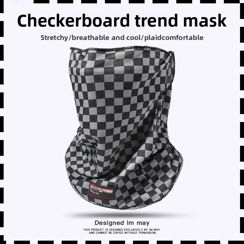 Original Full Face Sun Protection Face Mask Neck Protector Integrated Riding Face Cover Trendy Checkered Motorcycle Towel Unisex