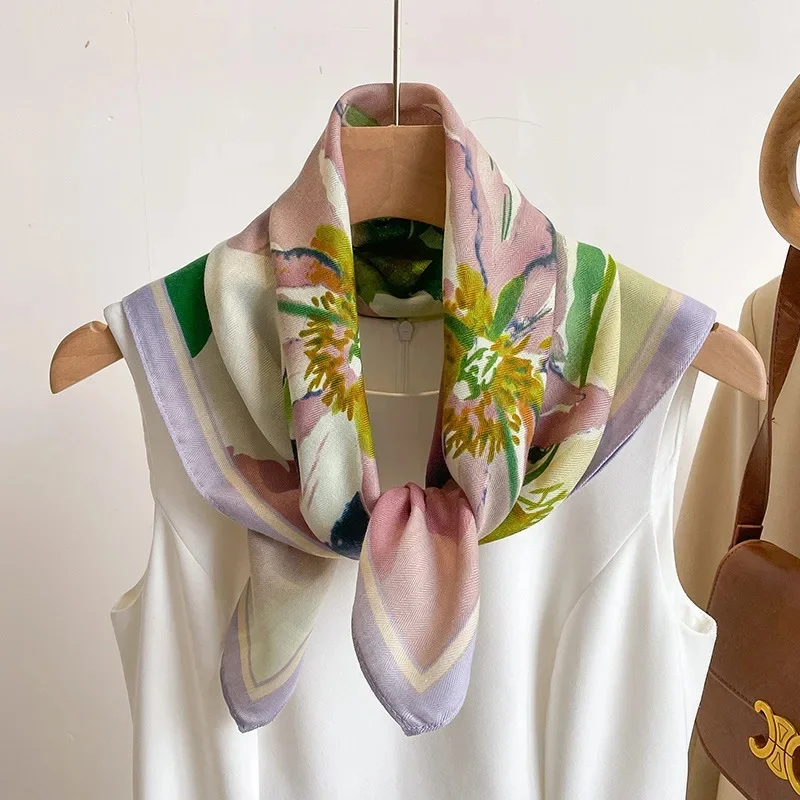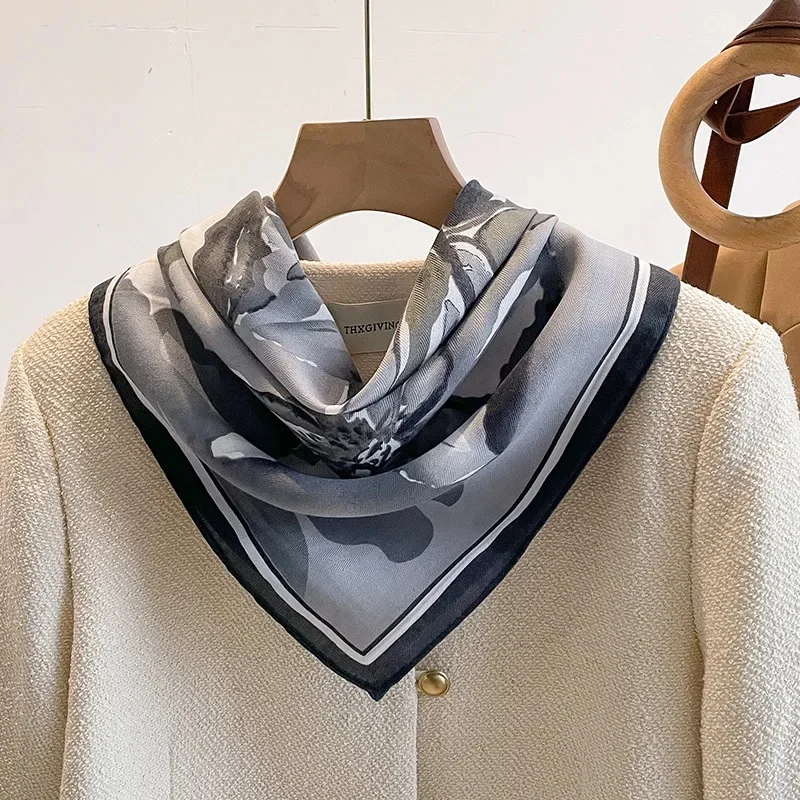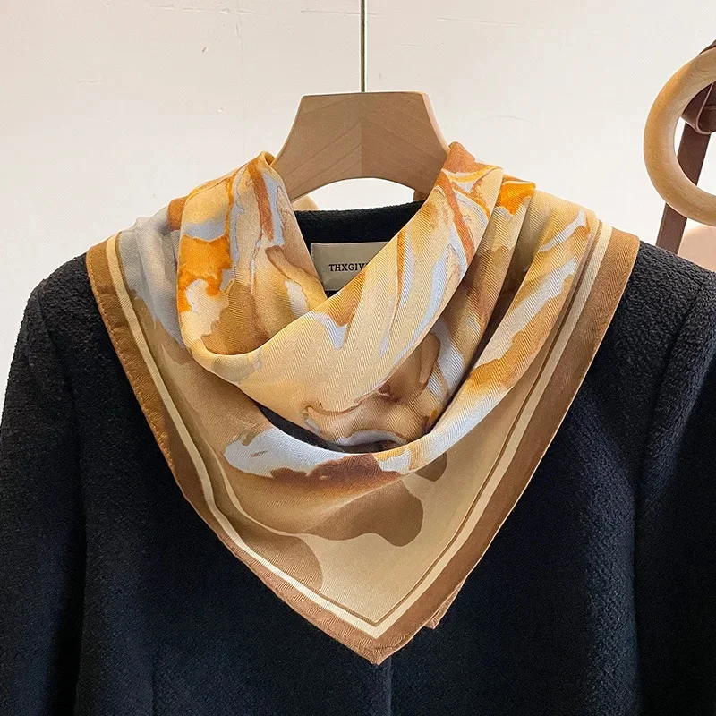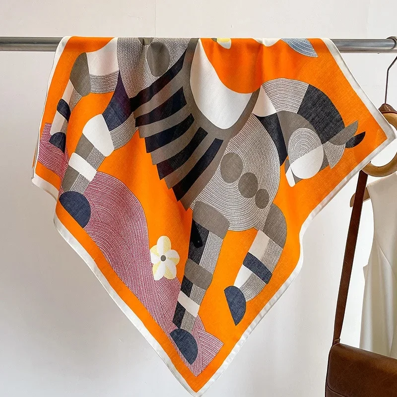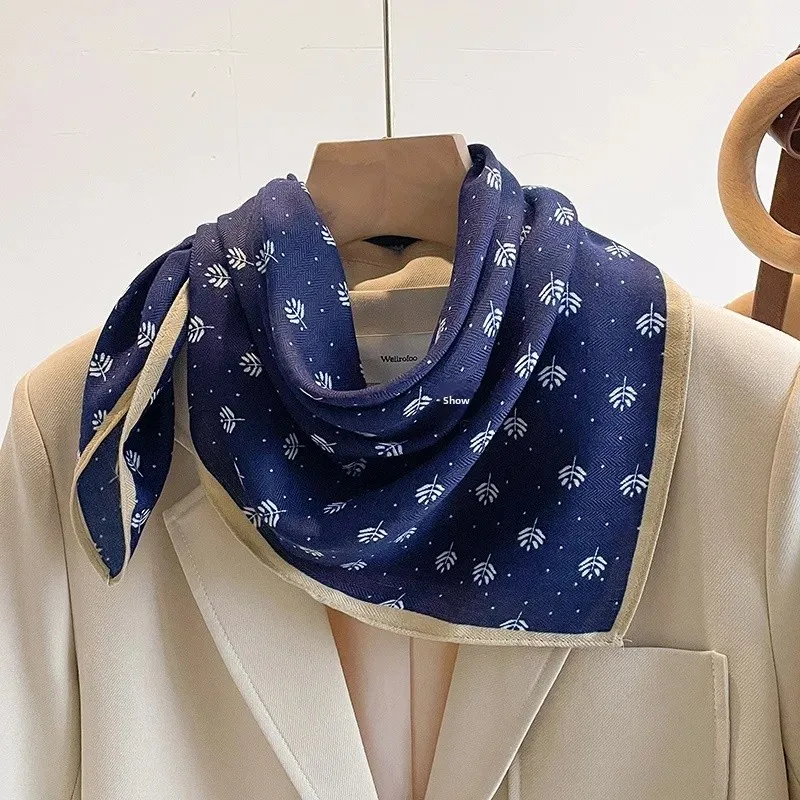 Blue Letter Printed Cotton Linen Square Scarf Women’s Spring Autumn Winter Small Tie Gift Shoulder Shawl for Mom Trendy Silk