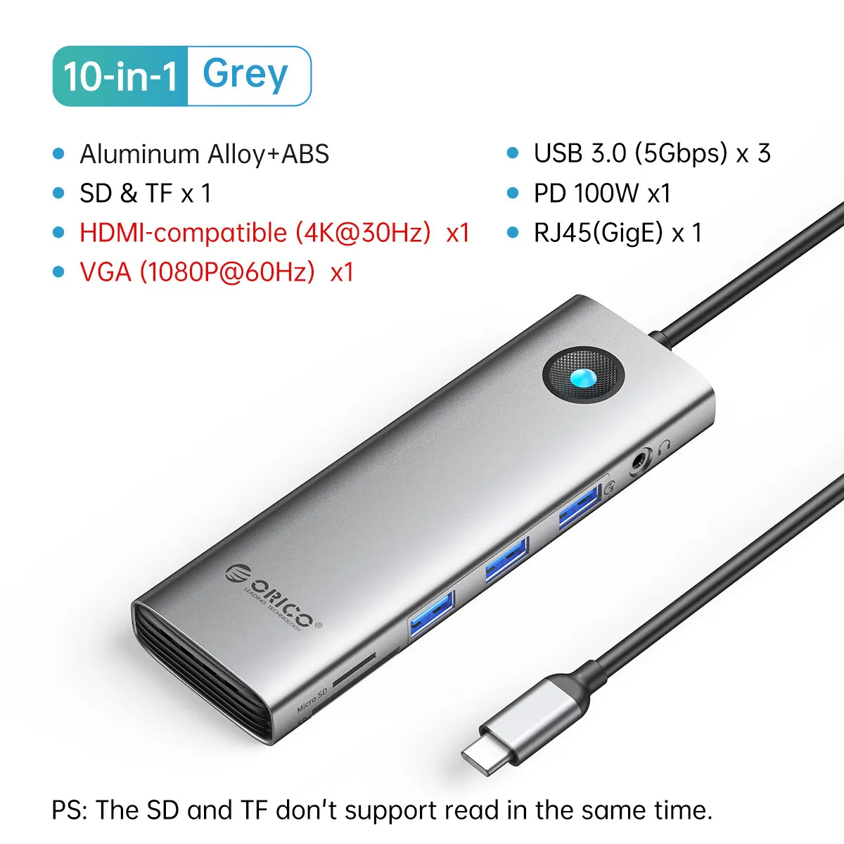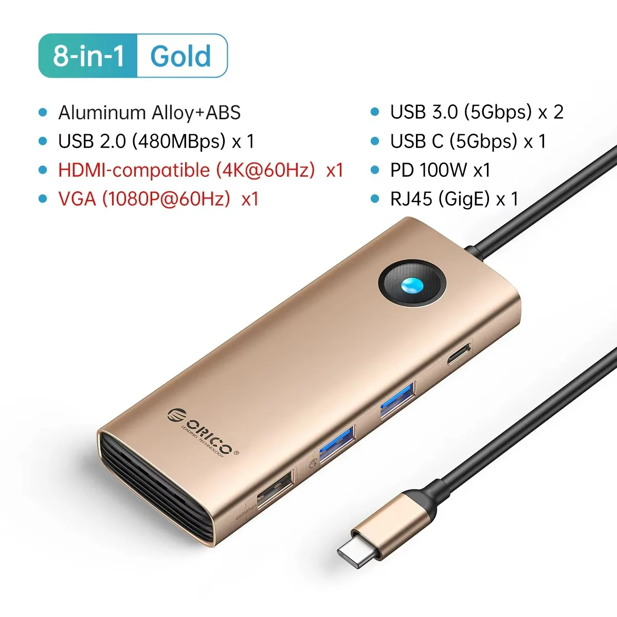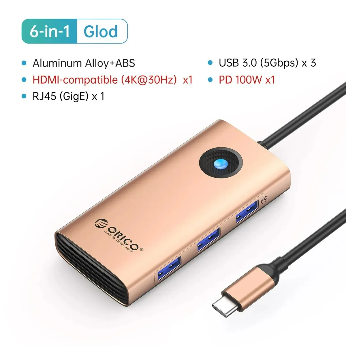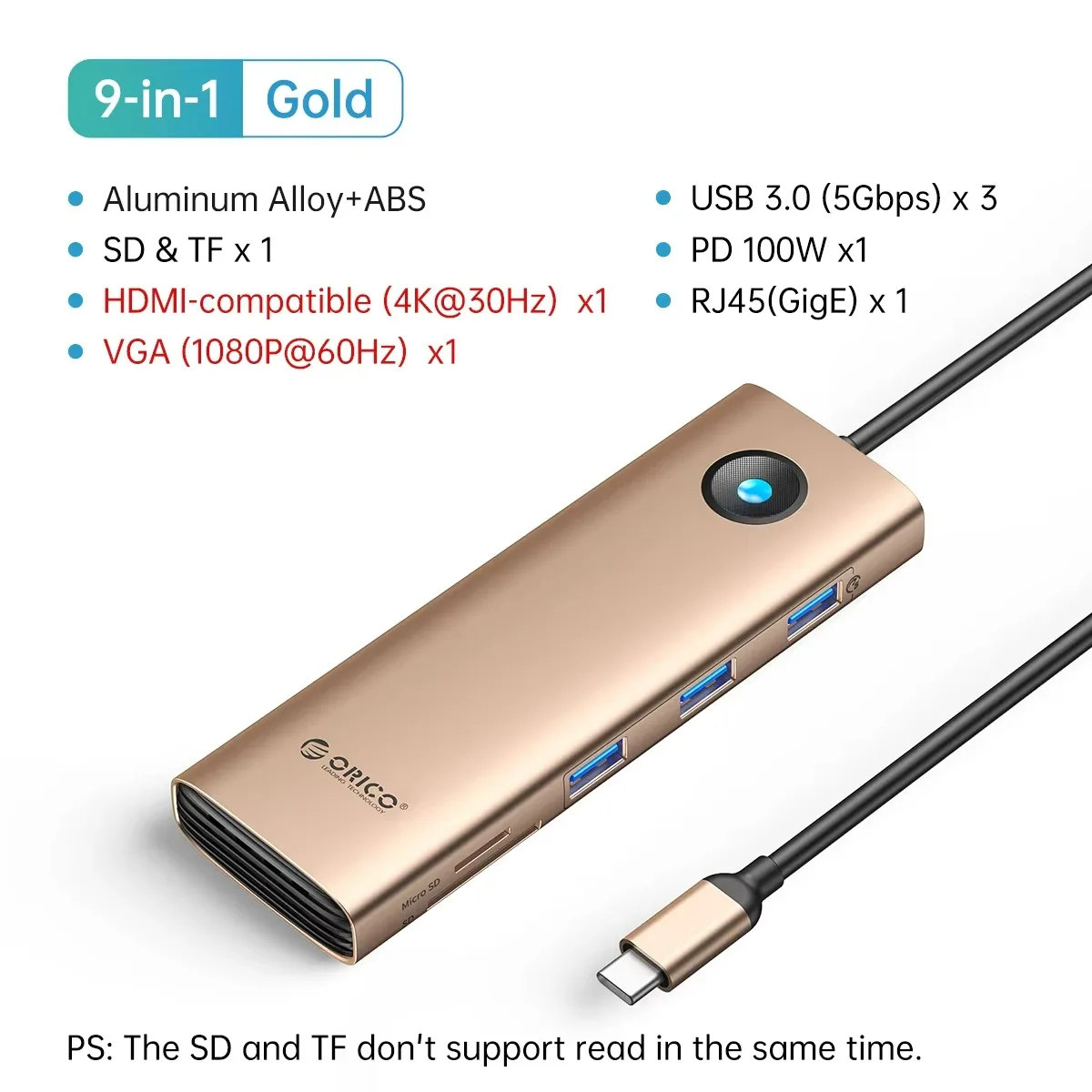 ORICO USB HUB Docking Station Type C HUB to 4K60Hz HDMI Compatible USB 3.0 Adapter SD TF Splitter RJ45 PD100W Charge For Mac Pro