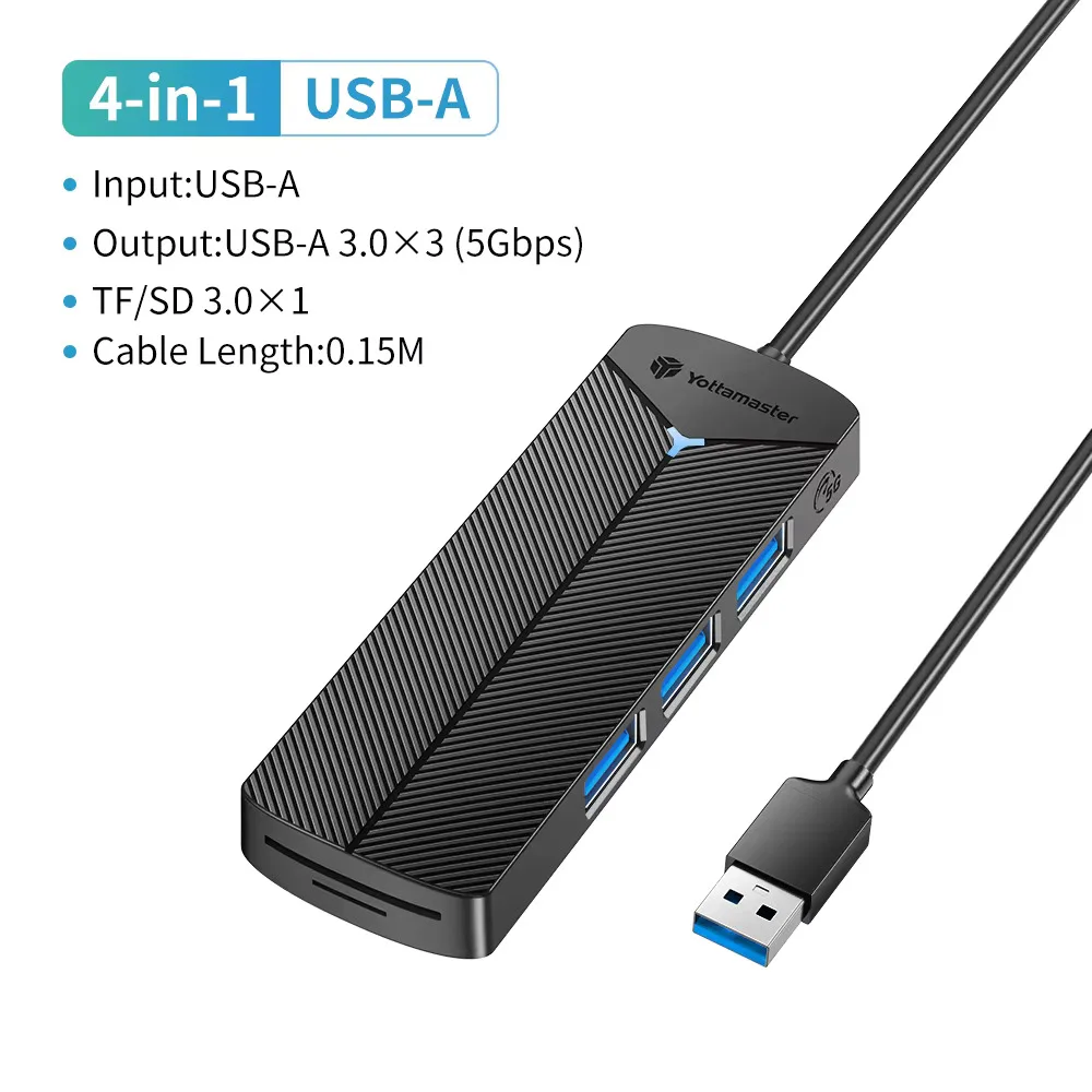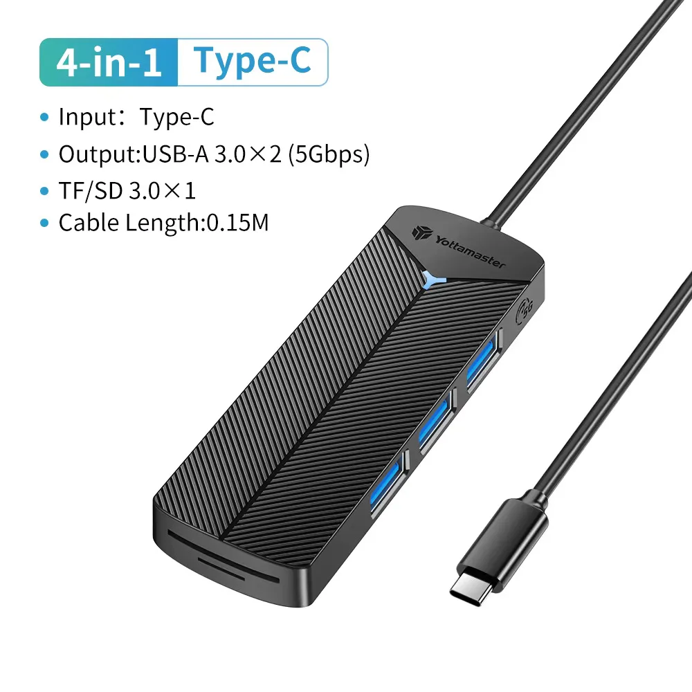 Yottamaster 5Gbps Adapter Expansion Dock Ultra-Slim OTG Adapter USB HUB TYPE-C HUB 4-Port Side Splitter USB HUB USB 3.0*4