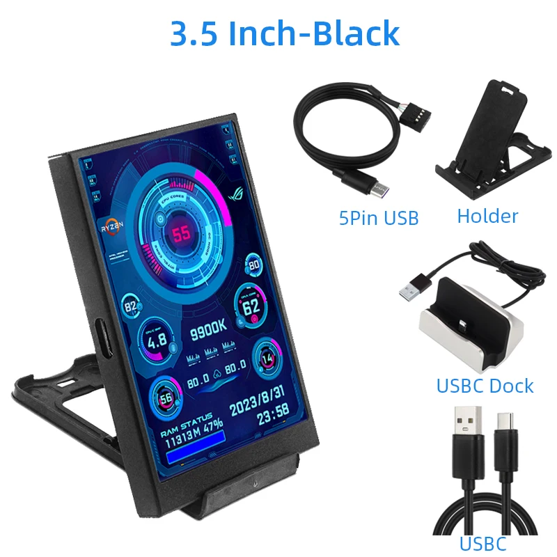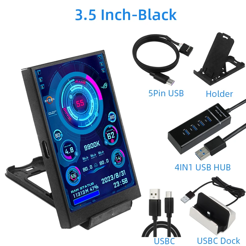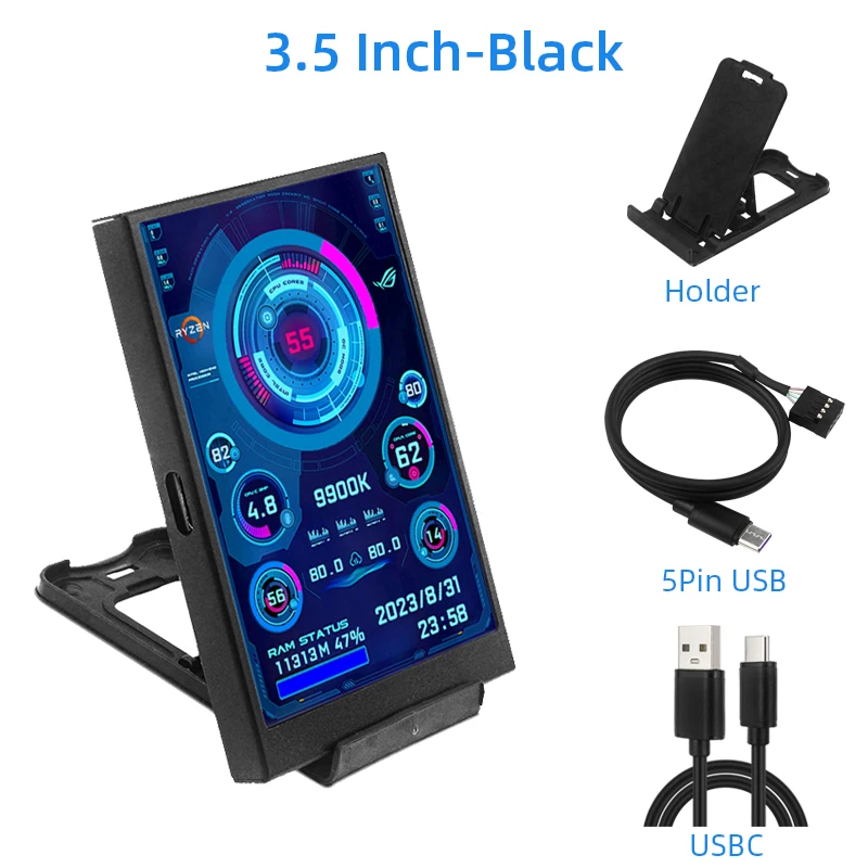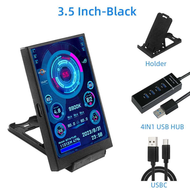 3.5 Inch IPS Secondary Screen USB Type-C Display PC Computer CPU GPU RAM HDD USBMonitor LCD Need Not AIDA64 for Windows 10 11