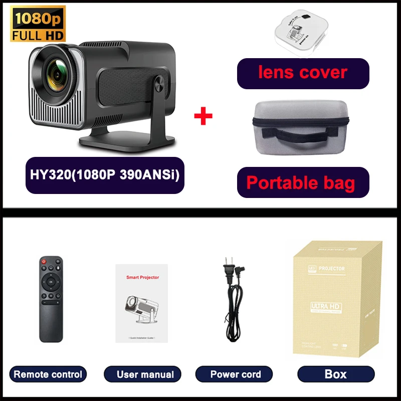 DITONG HY320 Newly Native 1080P Android 4K 1080p Projector 390ANSI Wifi Cinema Outdoor Portable 180° Rotable hy300 Projector