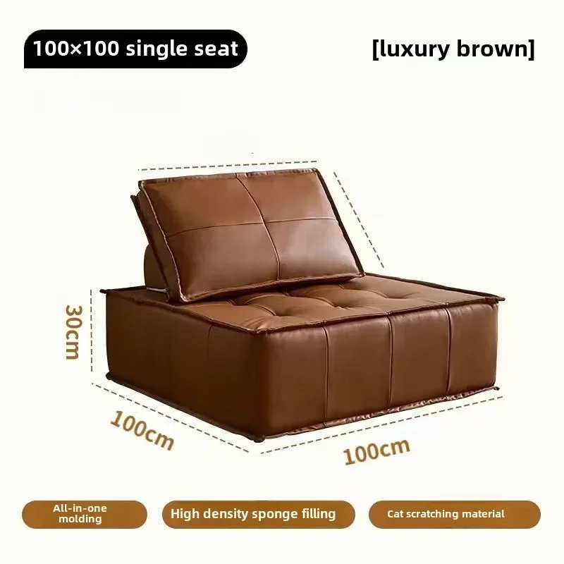 Modern Italian Leather Sofa High Backrest Genuine Piemonte Leather Single Seat Modular Couch Minimalist Living Room Furniture