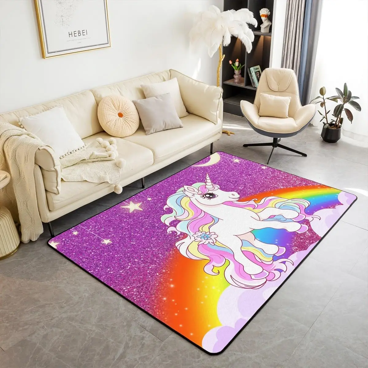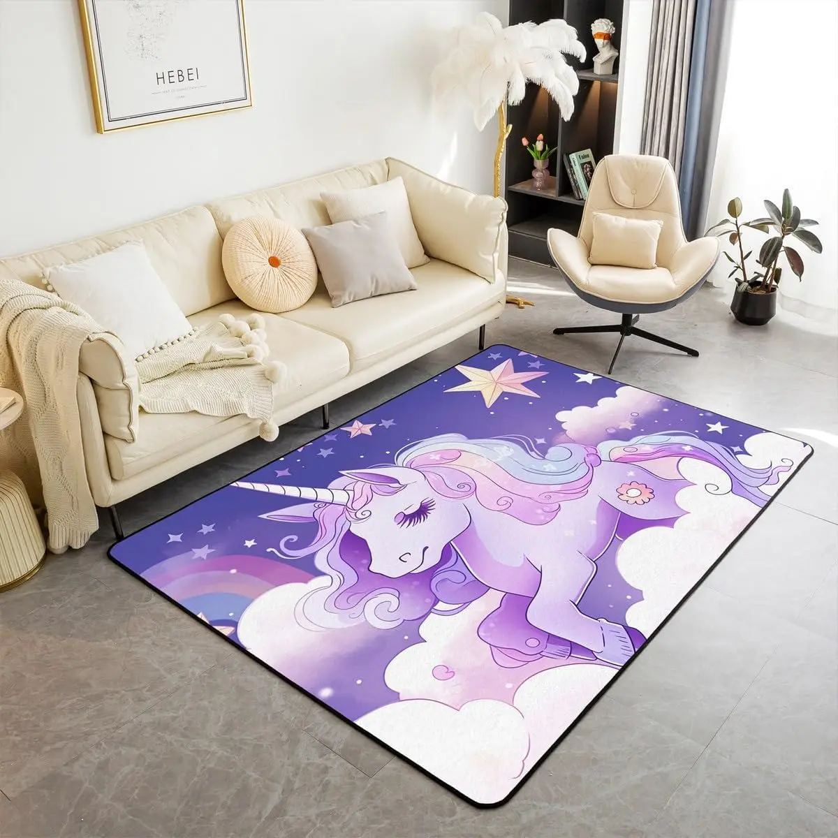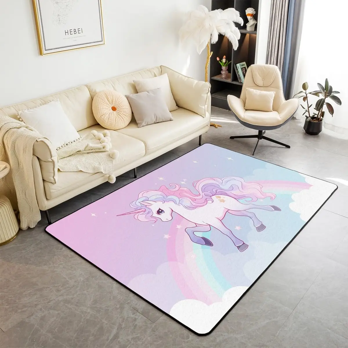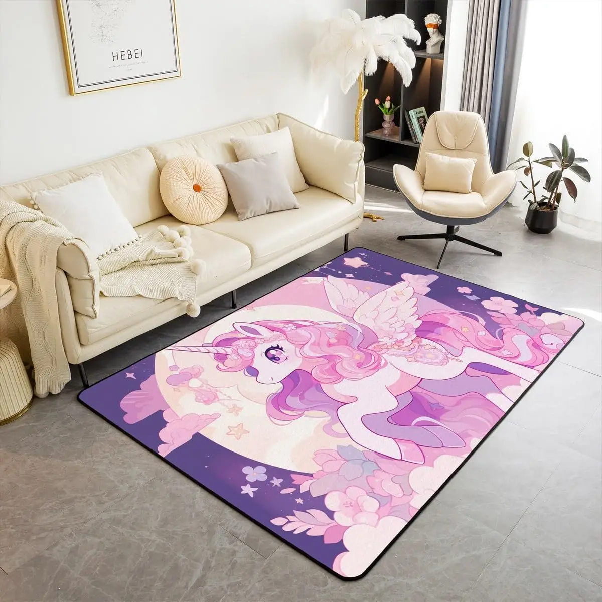 Lovely Unicorn Area Rug Cute Cartoon Animal Dreamy Non Slip Carpet for Girls Teens Cherry Blossom Indoor Floor Mat for Bedside