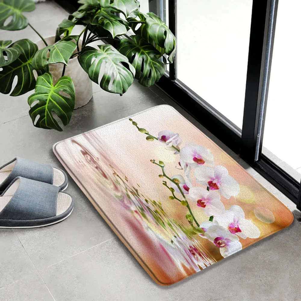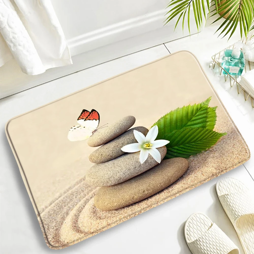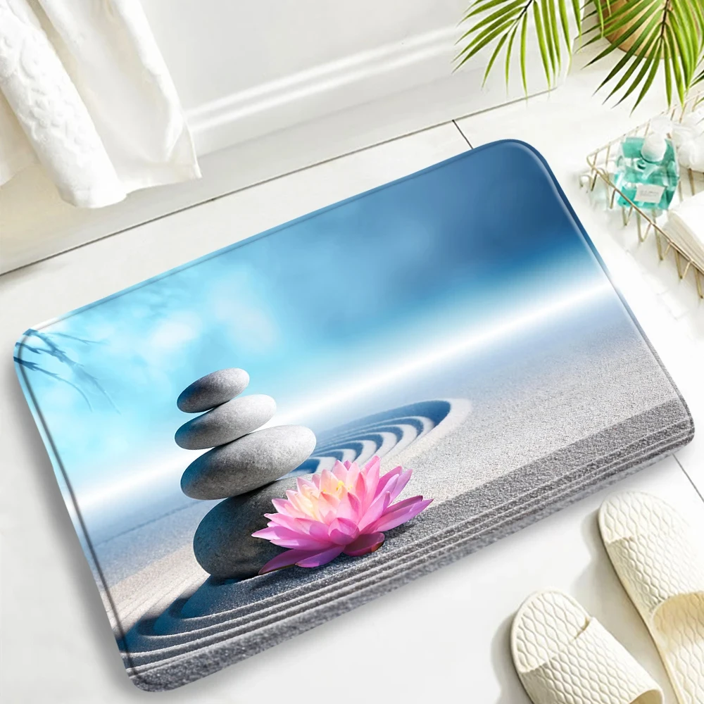 Orchid Green Bamboo Zen Carpet Flowers Spa Stone Natural Garden Scenery Bathroom Rug Anti-Slip Door Mat For Living Room Decor