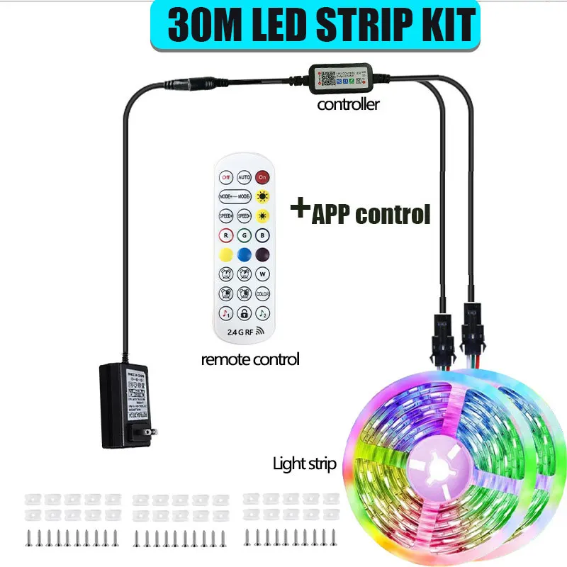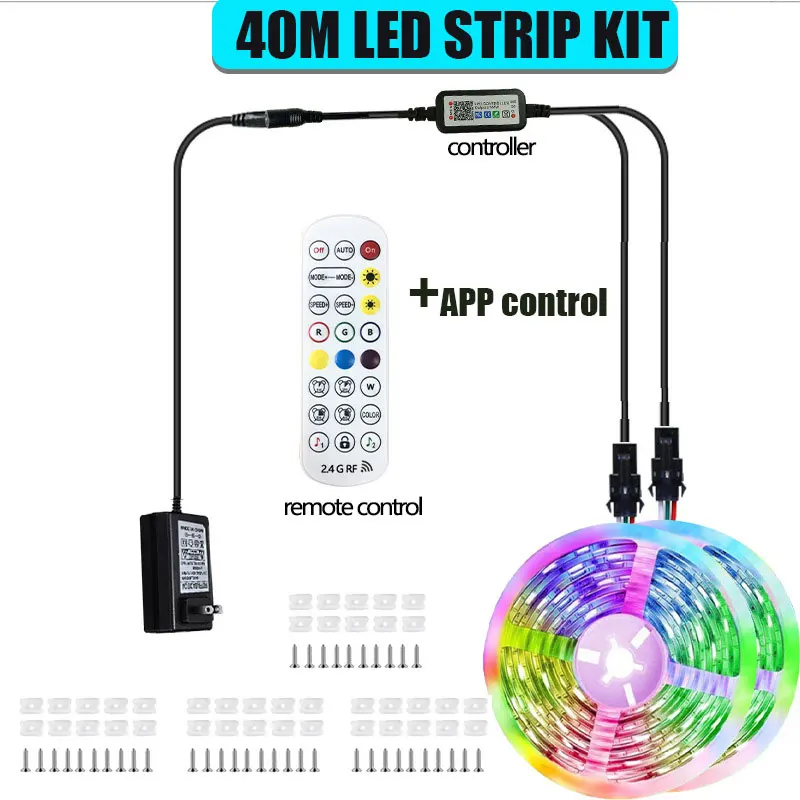 Outdoor Waterproof Rgbic Led Strip Lights Dc 24V 10M 15M 20M 30M 40M Smart App Control Led Ribbon Tape For Deck Garden Pool