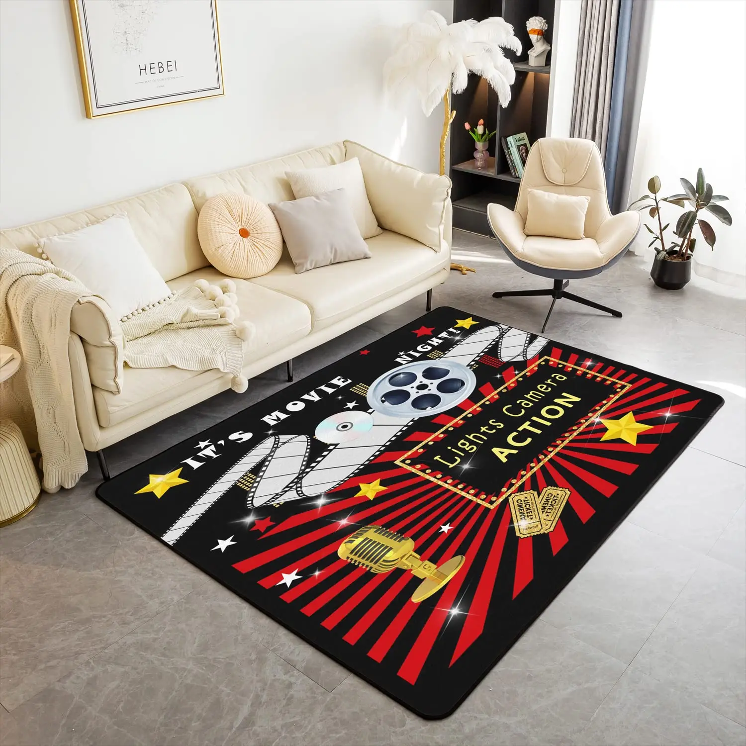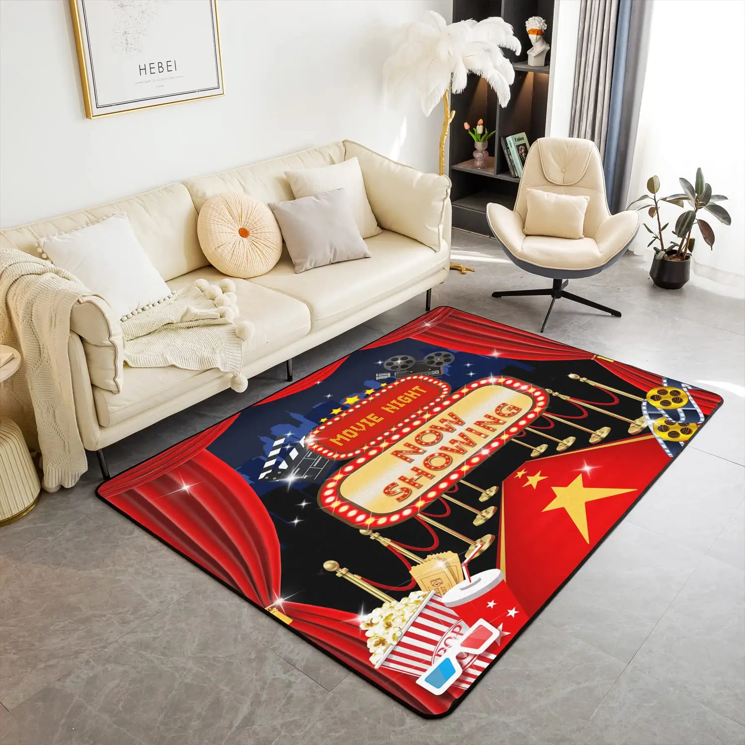 Popcorn Movie Theater Decor Carpet , Cinema Poster Living Room Rugs for Vintage Cinema Movie Theater Indoor Floor Mat Doormat