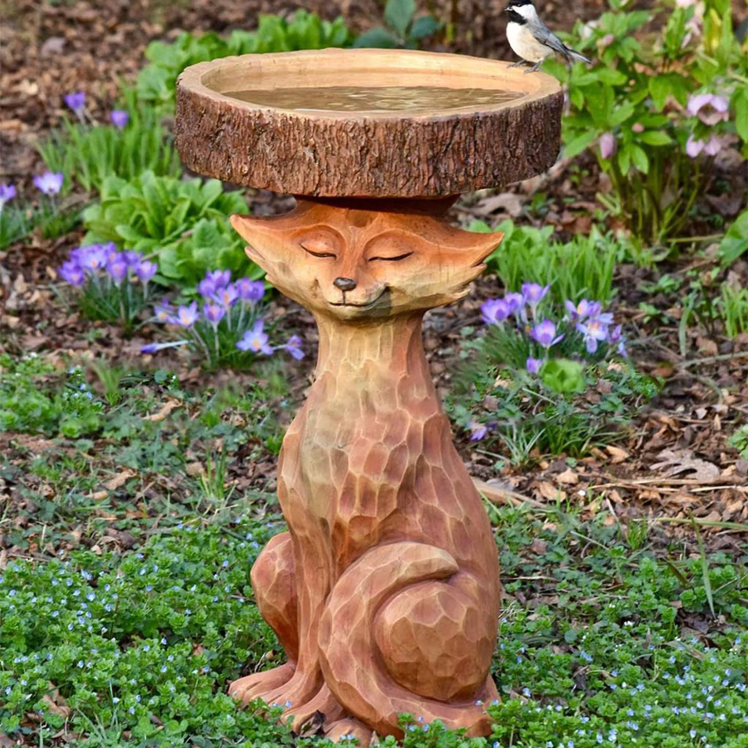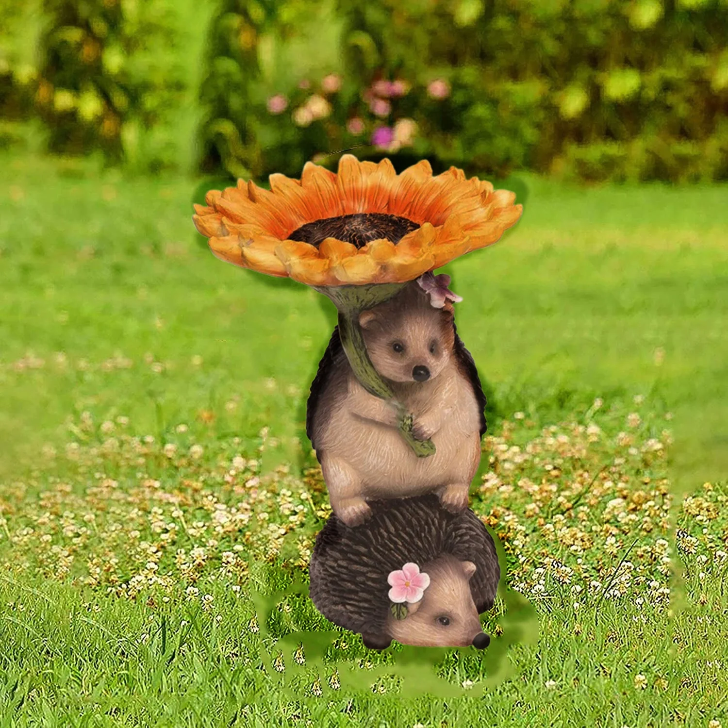 Polyresin Raccoon Bird Bath,Sunflower Bird Bath Statue, Outdoor Bird Bath Bowl,Resin Pedestal Fountain Decoration for Yard