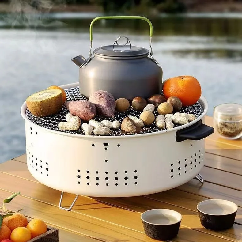 Portable Barbecue Grill Korean Charcoal Stove Stainless Steel Split BBQ Stove Round Non-stick Barbecue Rack For Outdoor Camping