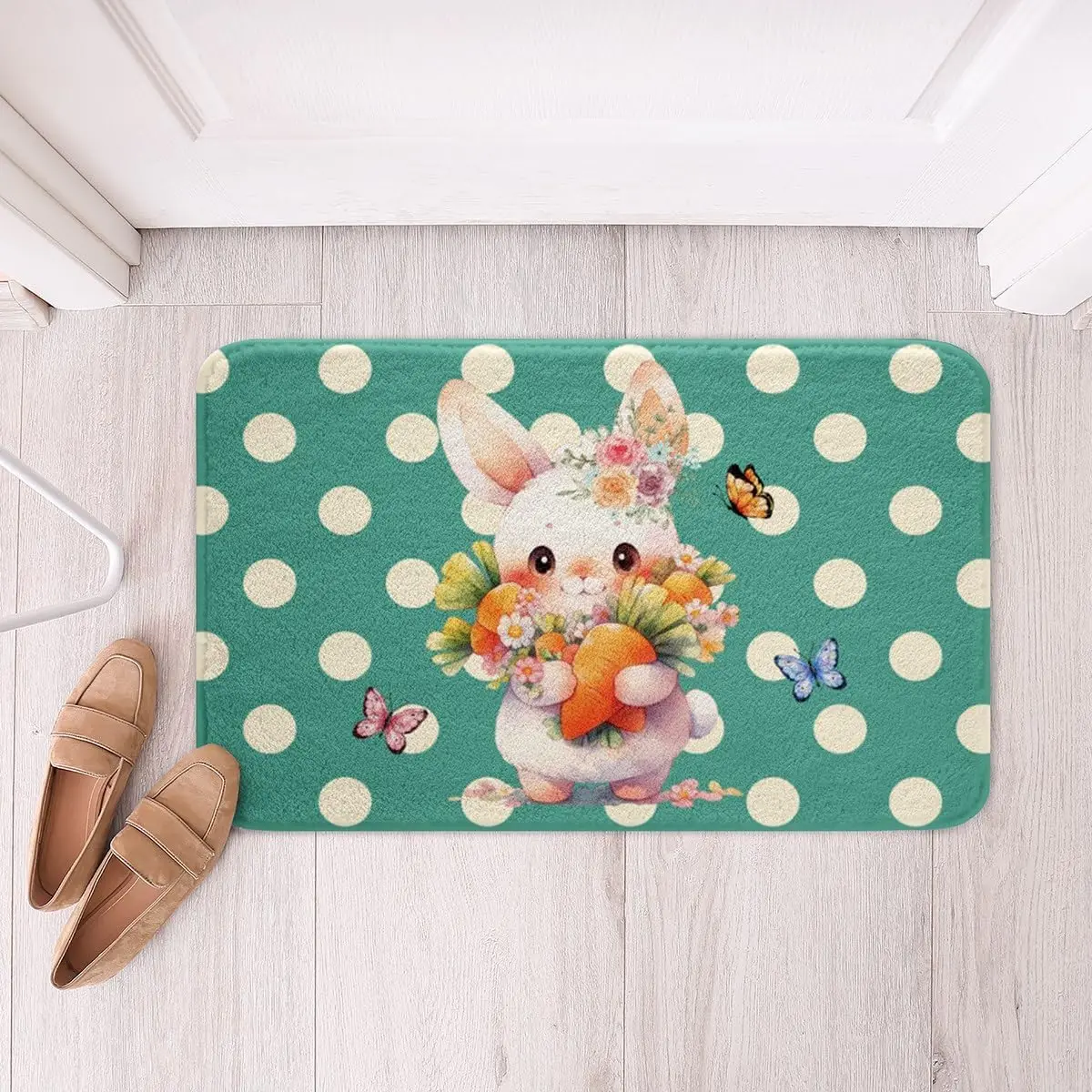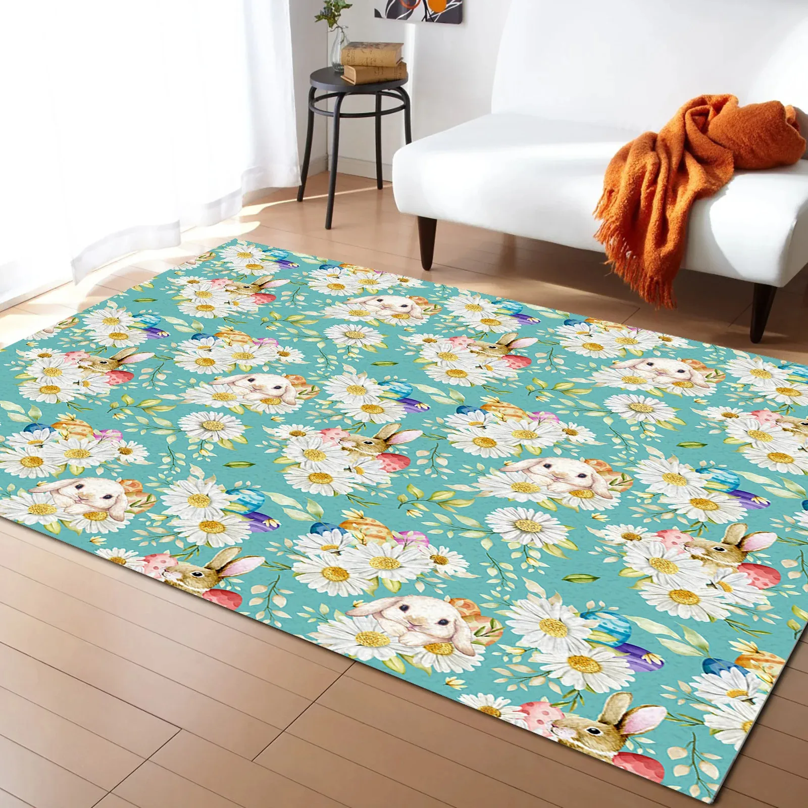 Kawaii Rubbit Area Rug for Bedside Wild Animals Farmhouse Style Indoor Floor Mat for Office Bathroom Decor Child Easter Gifts