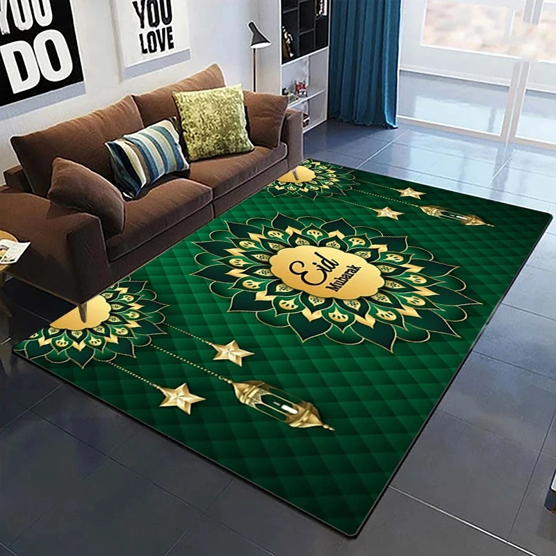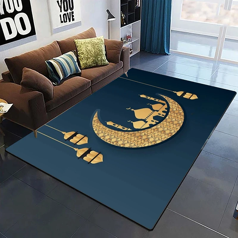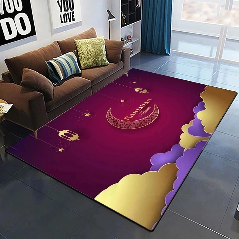 Muslim Prayer Mat Islamic Holiday Carpet Ramadhan Festival Rug Star Moon Print Doormat Living Room Sofa Floor Mat Bedroom Decor