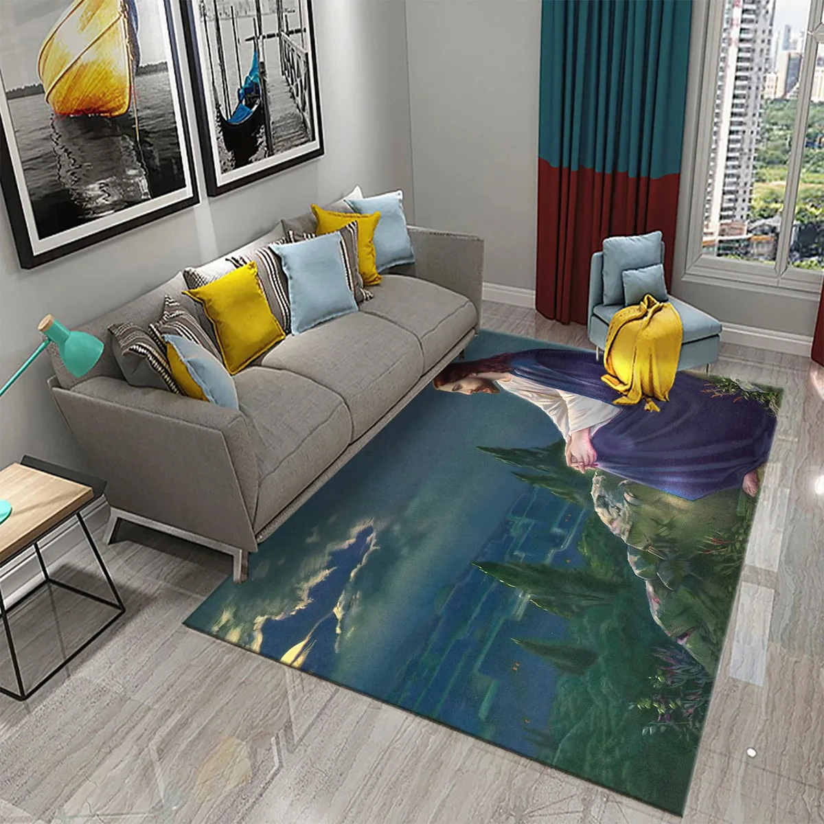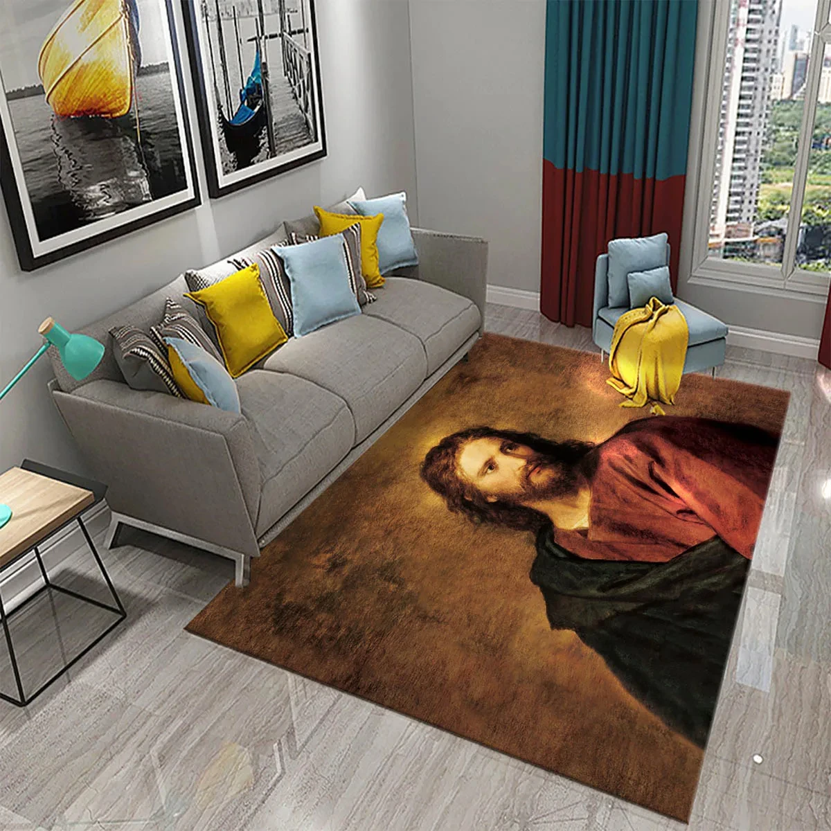 Jesus Carpet Believer Pray Mat Non-slip Rug for Living Room Bedroom Bathroom Decor Entrance Doormat Religious Theme Floor Mat