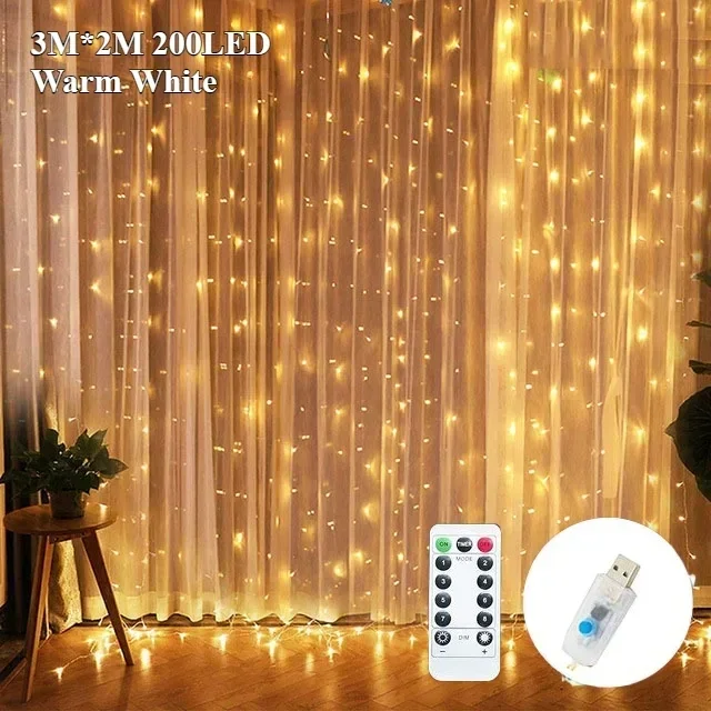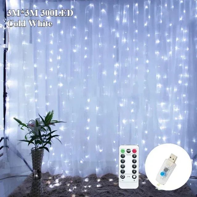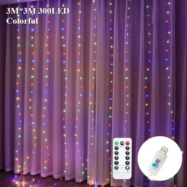 300 LED Fairy Curtain String Lights 8 Lighting Modes Dimmable for Christmas Weddings Garden Party Outdoor Decorations Lightings