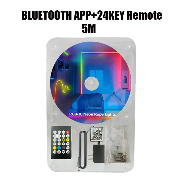 24V Rgbic Neon Strip Led Light 5M 10M 15M 20M Ip65 Rgbic Neon Flexible Lamp Tape With Bluetooth App Remote Rgb Led Wall Light