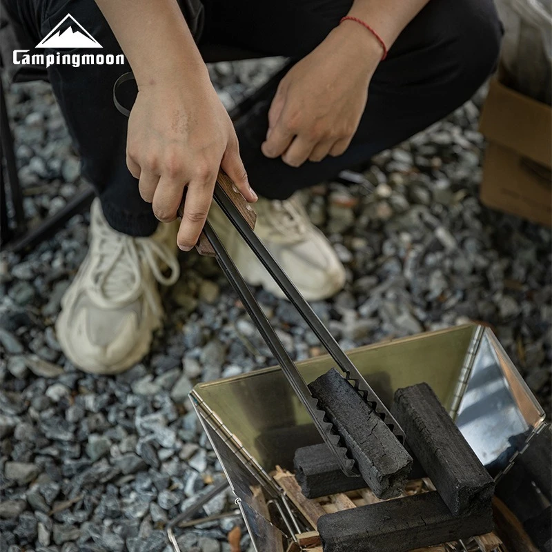 BKMS-41 Thickened Stainless Steel Multi-Function BBQ Accessories Carbon Clip Anti-Scalding Solid Wood Handle Firewood Charcoal C