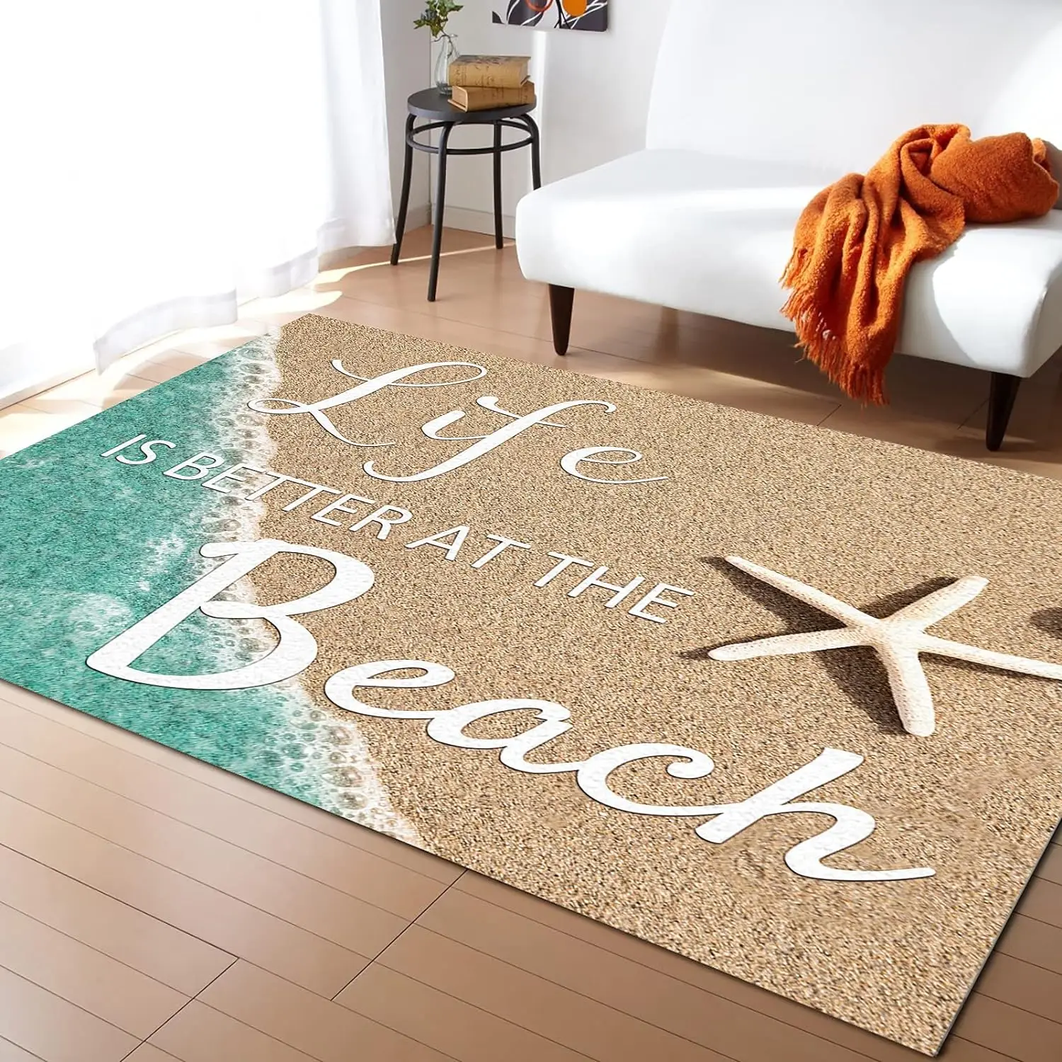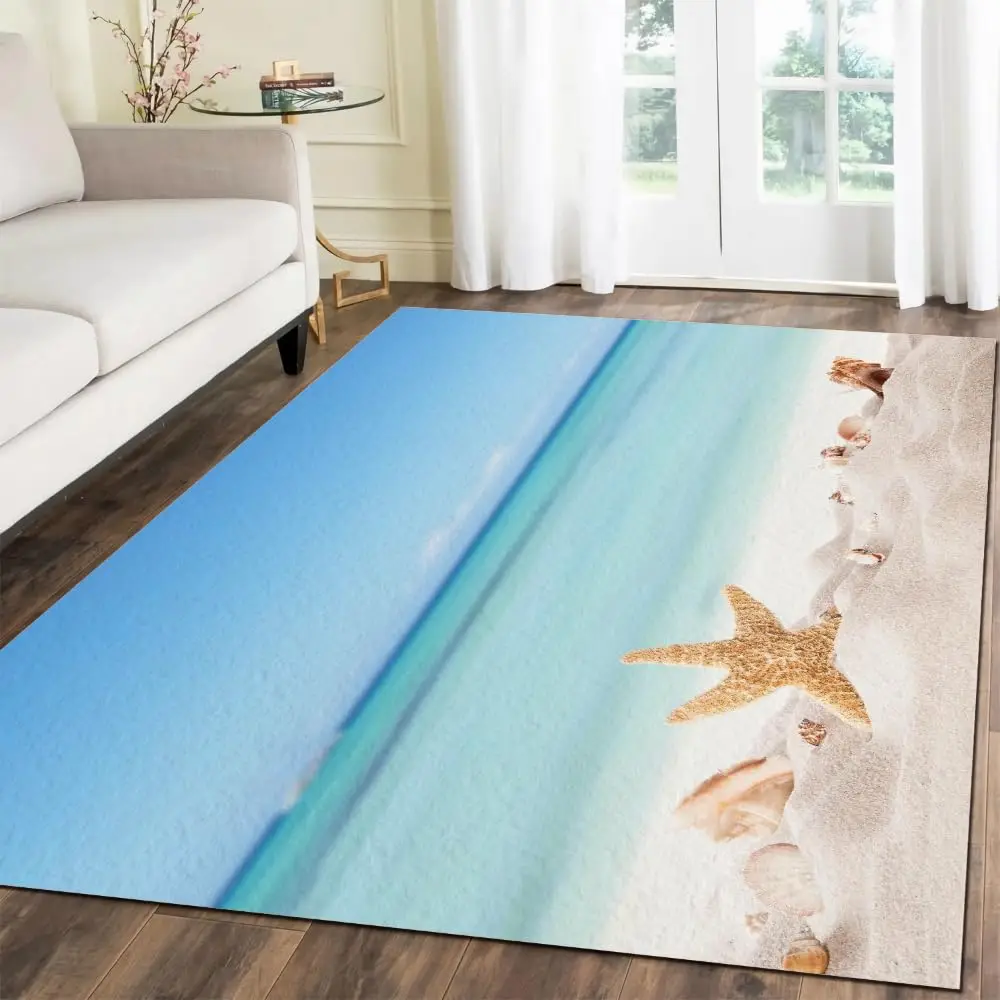 Beach Carpet Starfish Shells Area Rug for Kids Bedroom Living Room Decor, Soft Plush Floor Mat Ocean Theme Entrance Throw Rugs