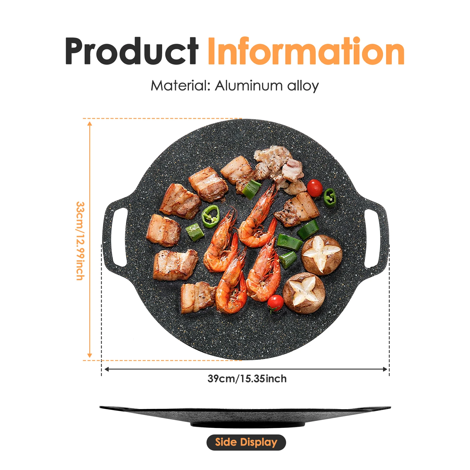 BBQ Grill Pan 11.8/13inch Round BBQ Ovenware Aluminium Alloy Non Stick Korean BBQ Grill Pan for Home Kitchen Camping Travel