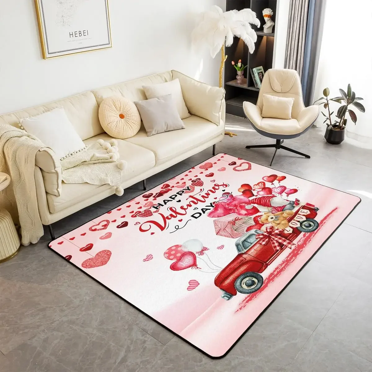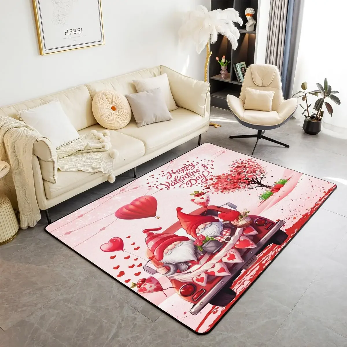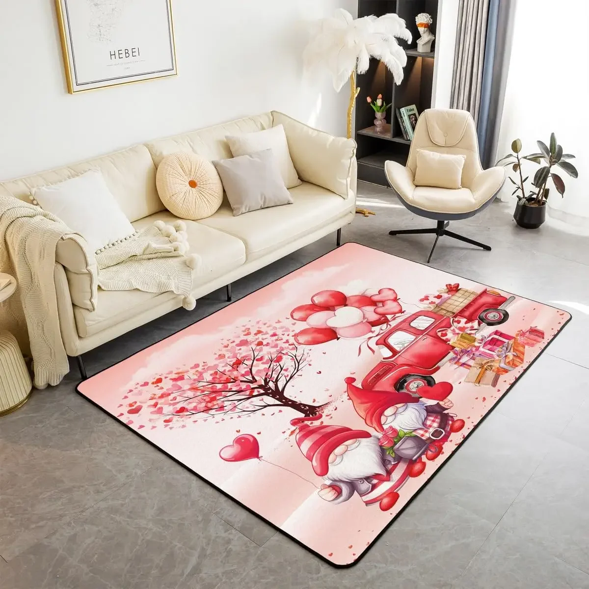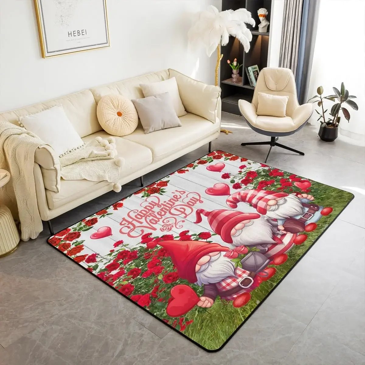 Cartoon Gnome Carpet Valentine’s Day Area Rug For Living Room RV Couch Bed Decor Romantic Style Love Flower Indoor Floor Mat