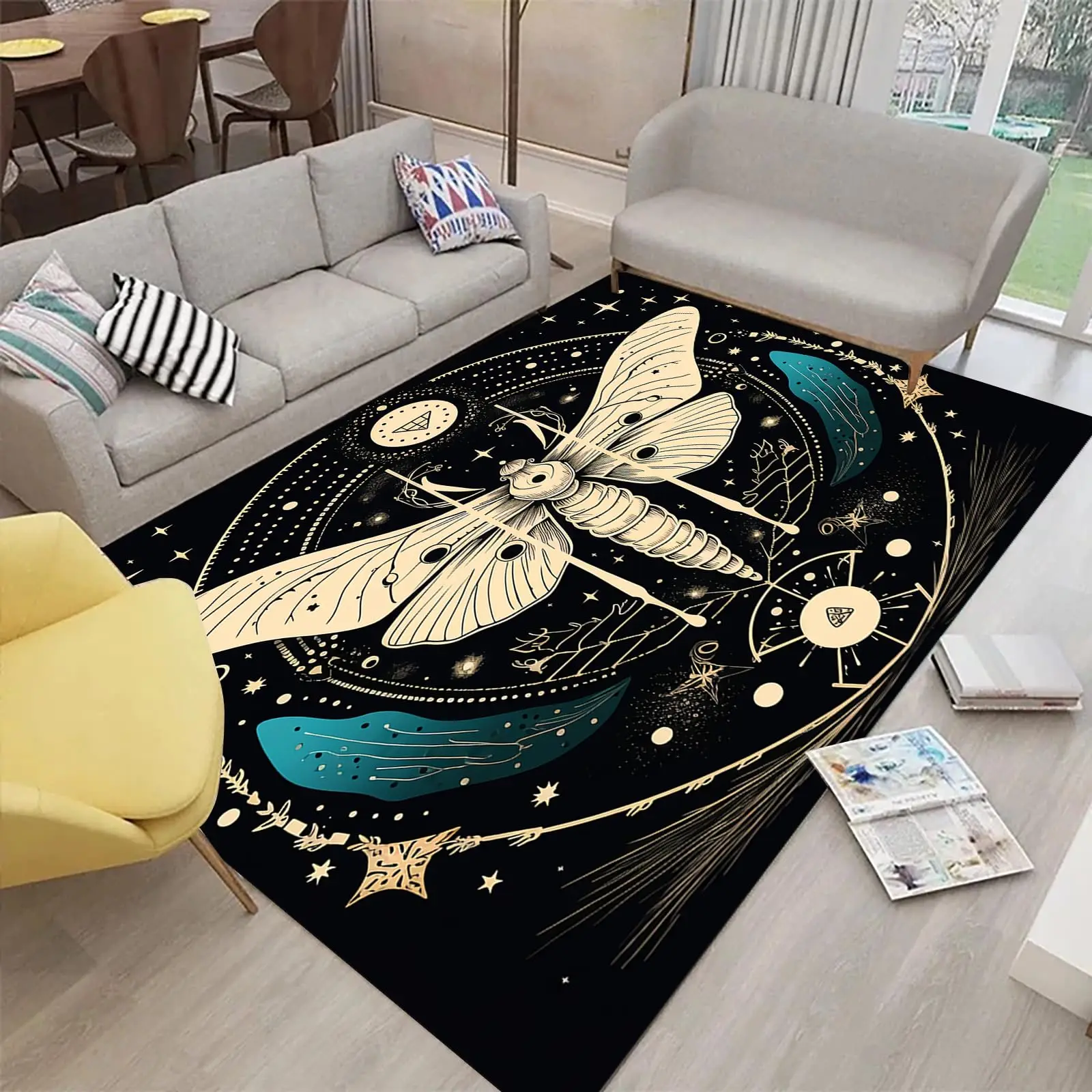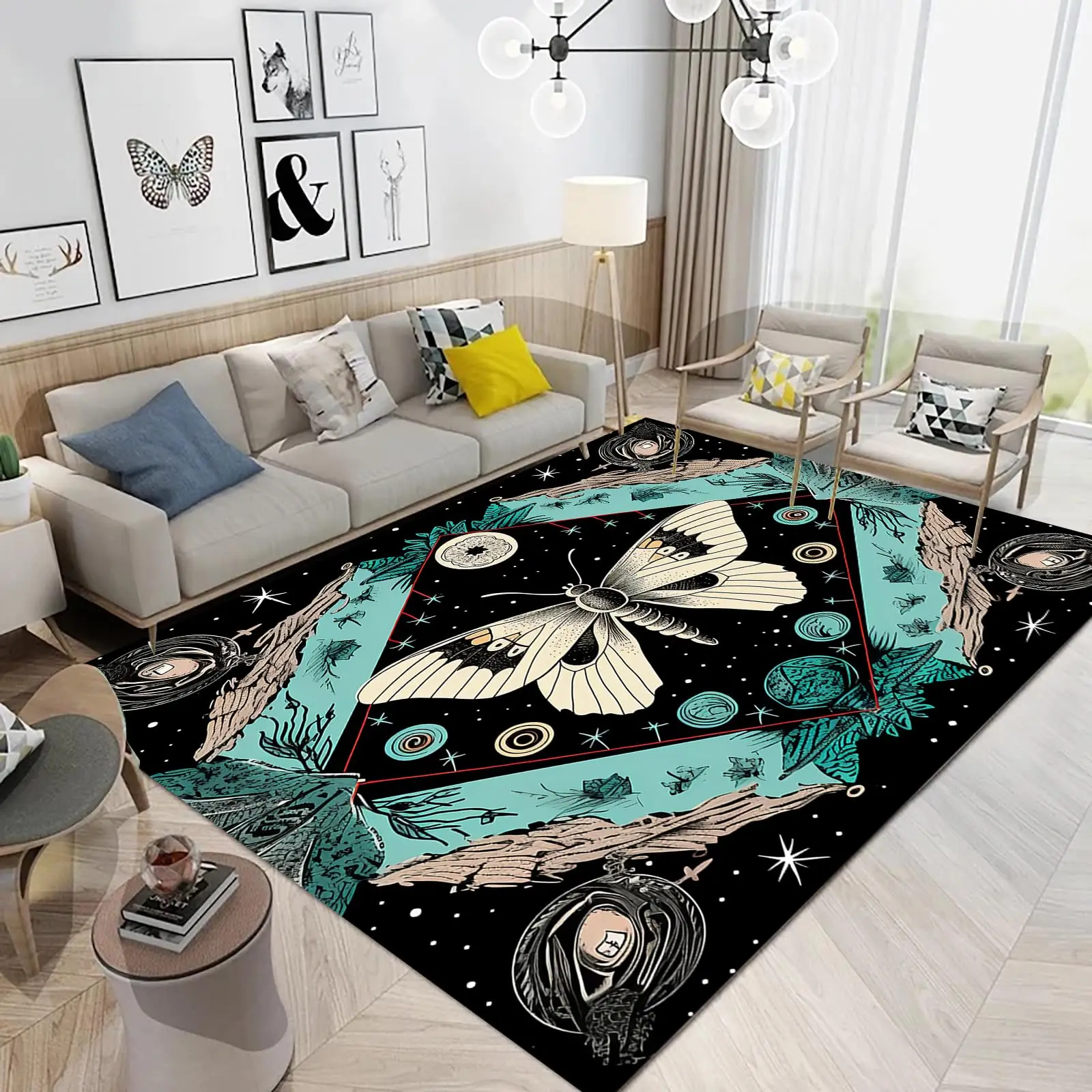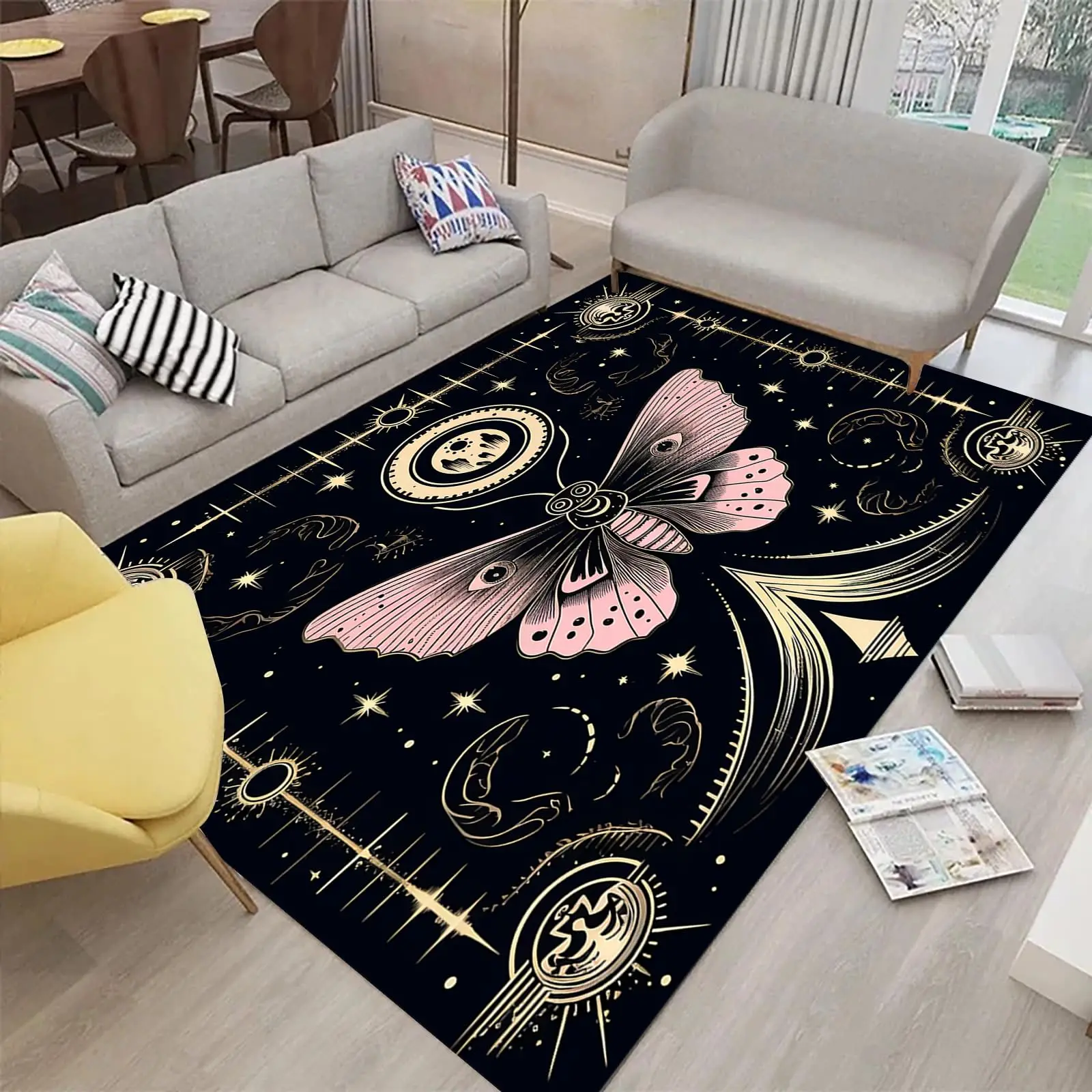 Butterfly Area Rug for Living Room Bedside, Gothic Moth Doormat Astrology Style Carpet Boho Exotic Starry Sky Indoor Floor Mat