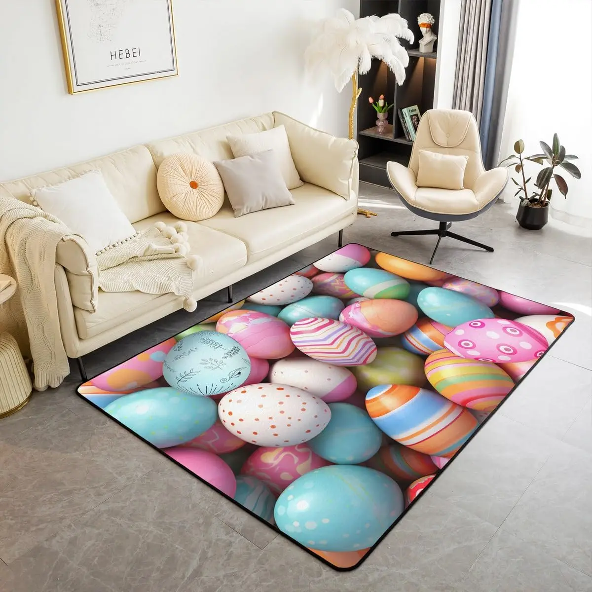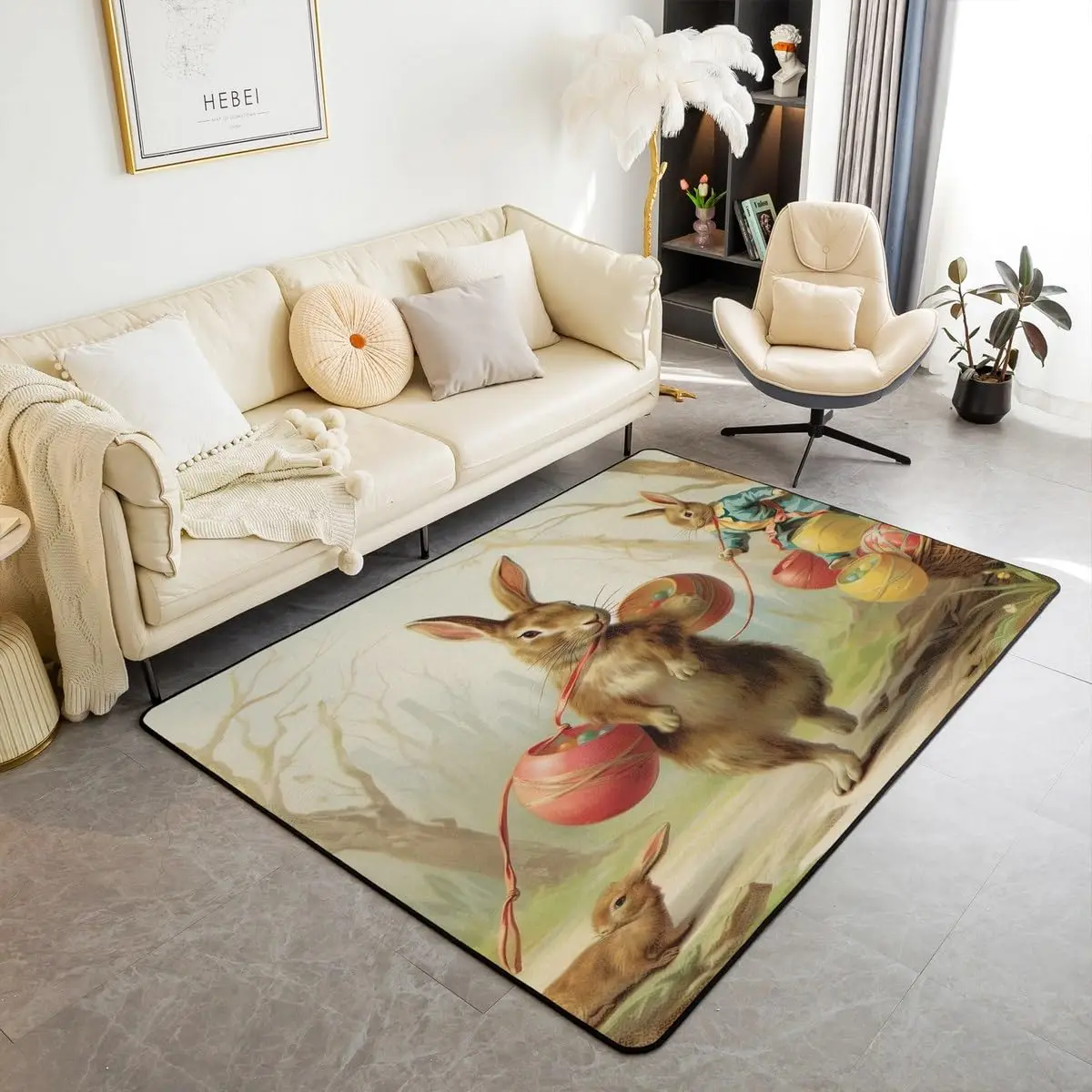 Bunny Living Room Rugs Rose Floral Easter Egg Rabbit Carpet Non Slip,Cartoon Pet Animals Indoor Floor Mat for Bedroom Kitchen