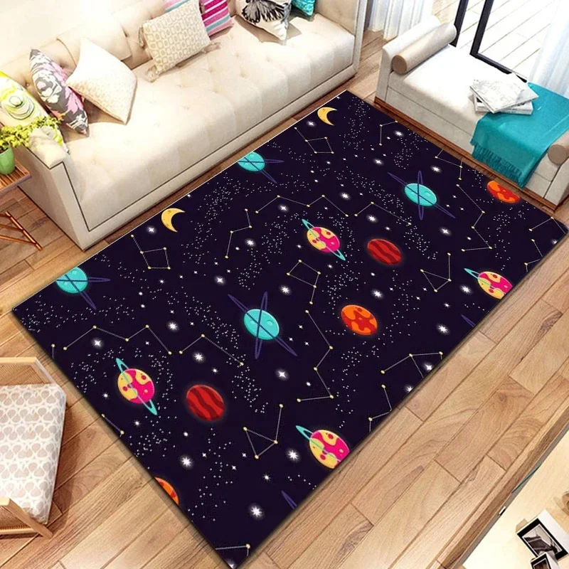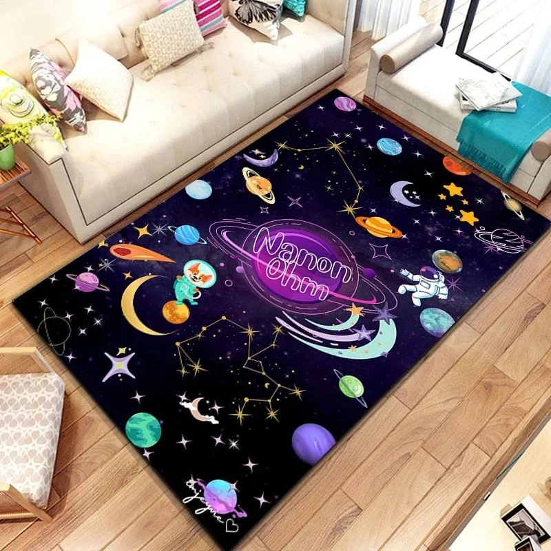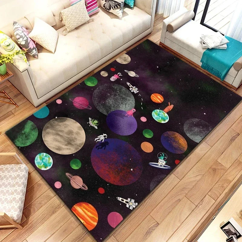 Cartoon Outer Space Astronaut Carpet Universe Galaxy Area Rug For Bedroom Living Room Decor Planet Doormat Starry Sky Floor Mat