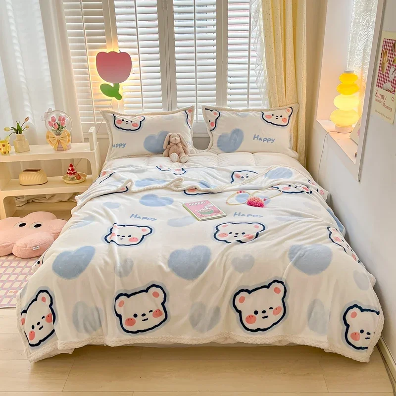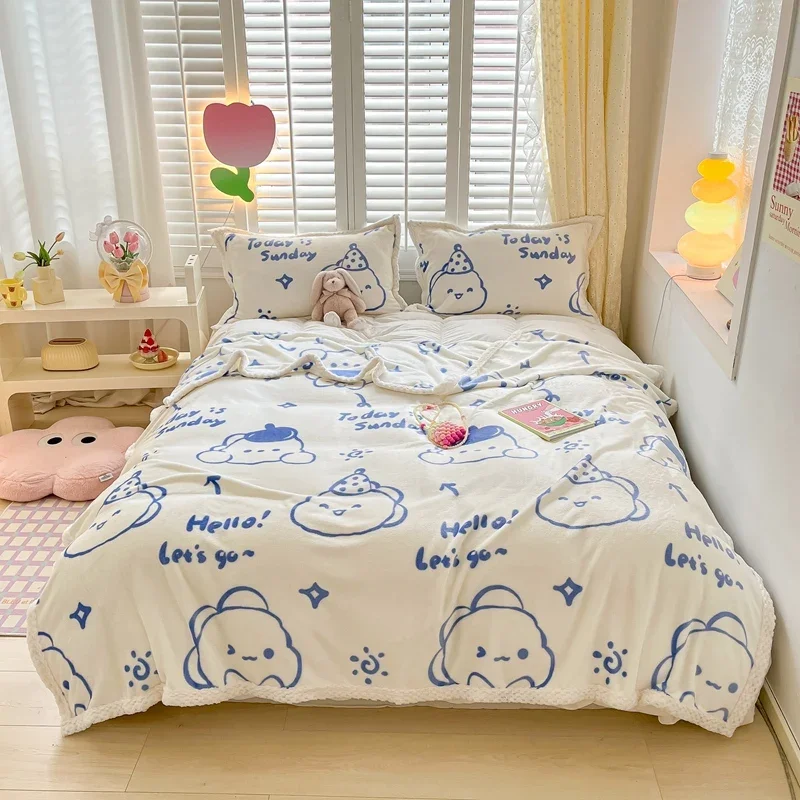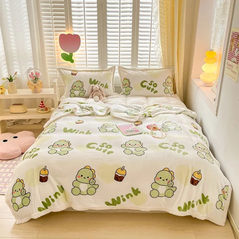 Cartoon Blanket with 2 Pillowcases Botanical Floral Kawaii Dinosaur Throw Blanket Super Soft Warm Reversible Milk Fleece Blanket