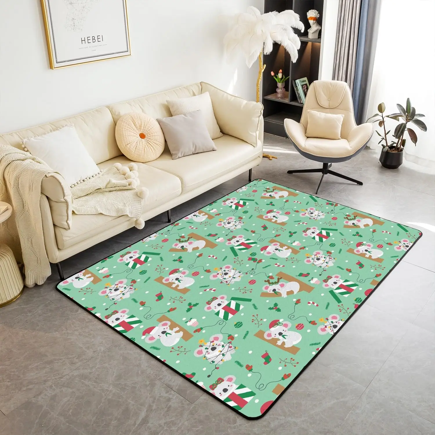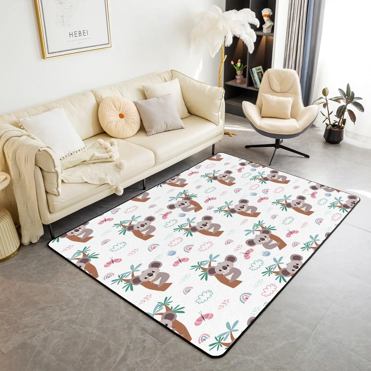 Cartoon Koala Area Rug Kawaii Wild Animal Carpet Flower Floor Mat for Bathroom Living Room Backyard Non Slip Entrance Doormat