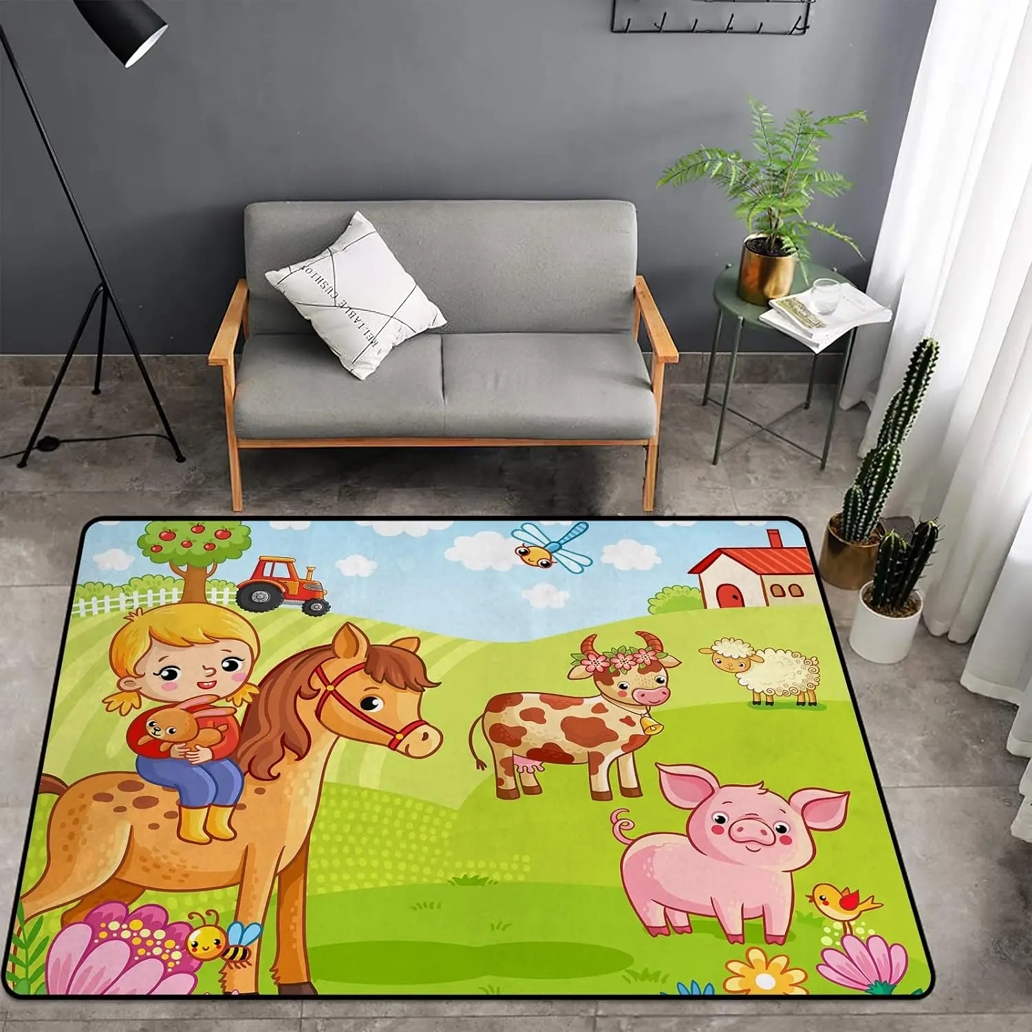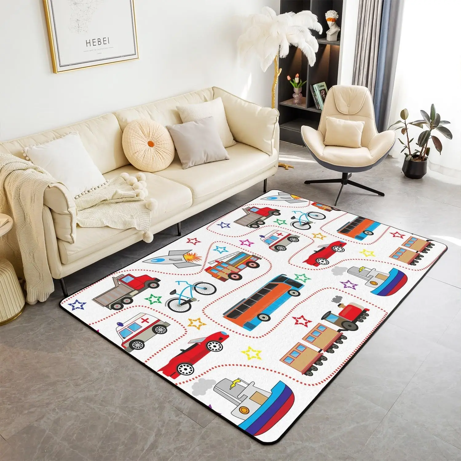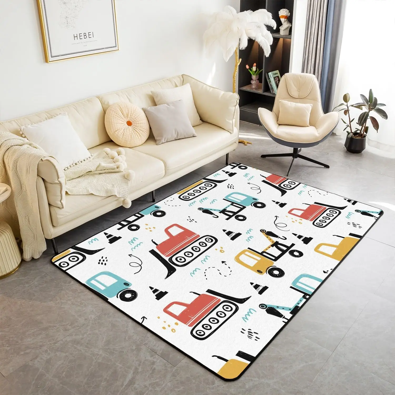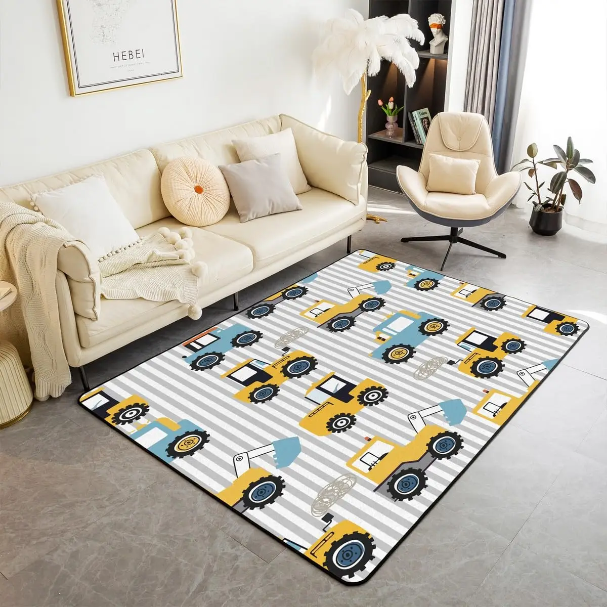 Cartoon Car Area Rug Cartoon Farm Equipment Truck Carpet for Kids Boys Tractor Living Room Doormat City Road Indoor Floor Mat