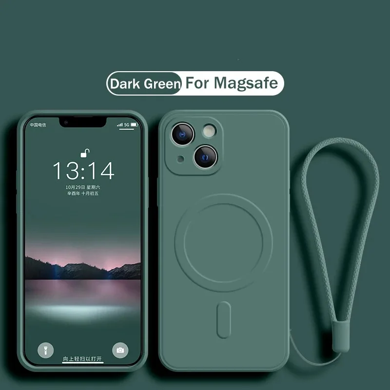 For Magsafe Magnetic Wireless Charge Case for IPhone 15 16 14 13 12 11 Pro Max Mini XR XS Plus Soft Liquid Silicone Strap Cover