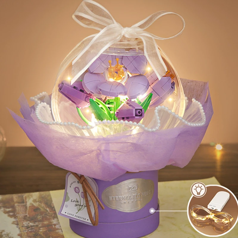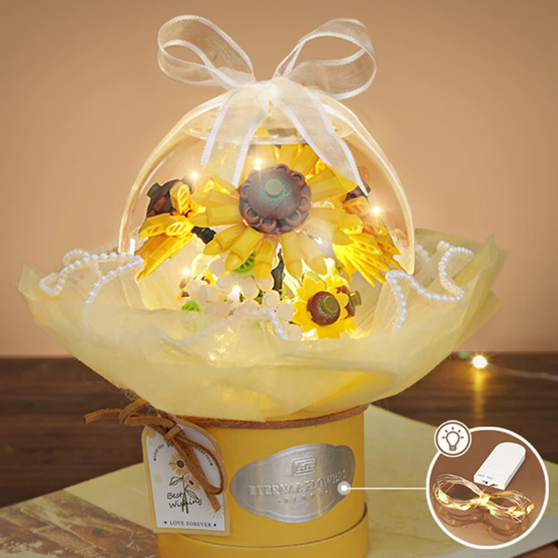 LOZ Romantic Light Roses Flowers Sunflowers Gardens Valentine’s Day Building Blocks Classic Model Mini Bricks Sets Kids Kits