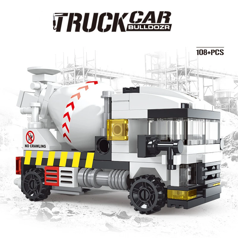 NEW Engineering Cement Mixer Engine Mini Loader Truck Special Police Car Classic Model Building Blocks Sets Bricks Toy City