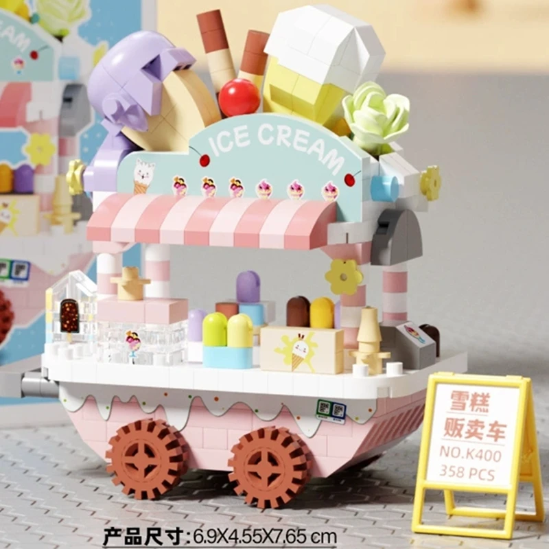 NEW DIY Selling Car Food Truck Fruit Ice Cream Store Flower Street View Building Blocks Kit Girls Bricks Model Kids Toy Children