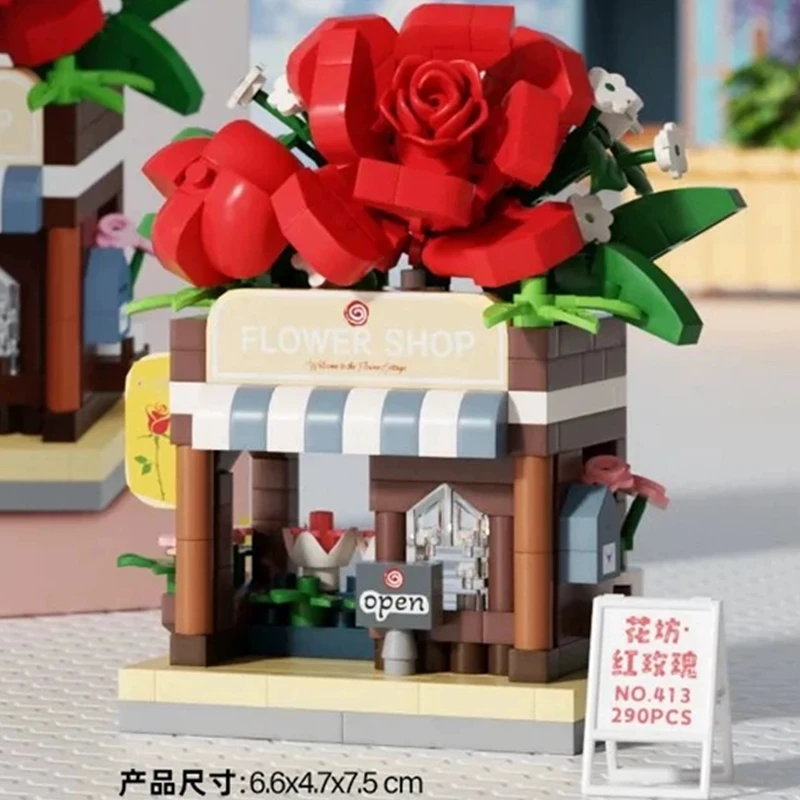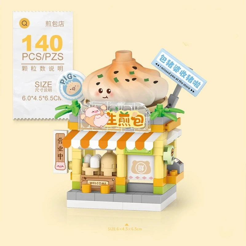 NEW Gift Snack Stationery Store Small Shop Store Street View Food House Building Blocks Kit Girls Bricks Model Kids Toy Children
