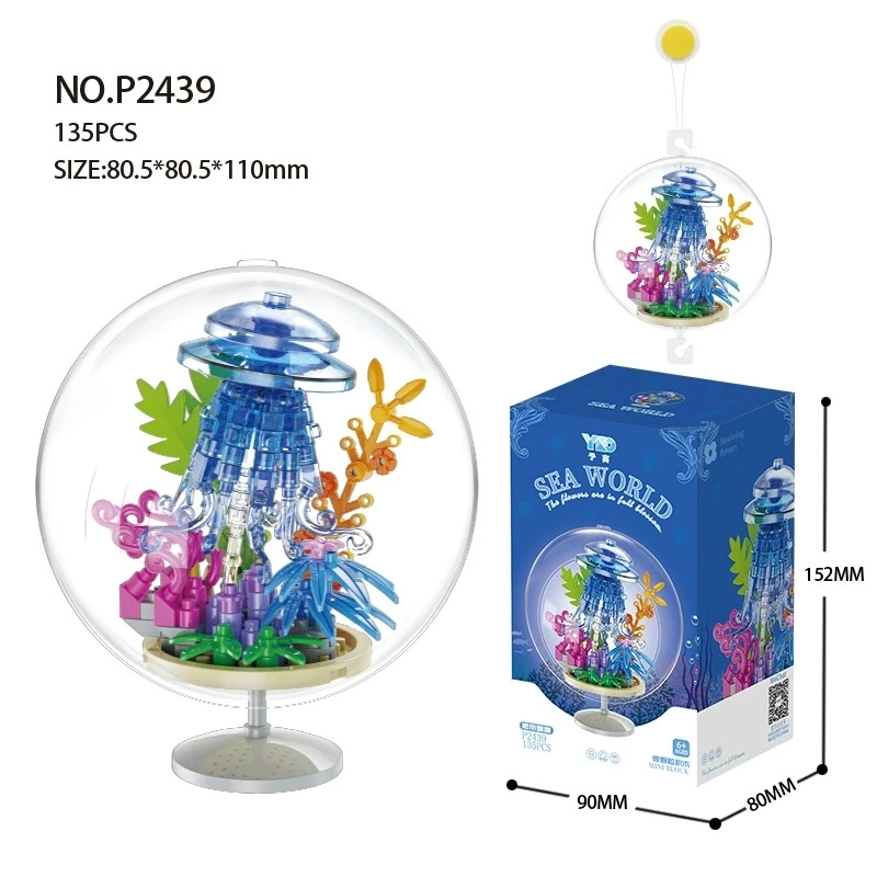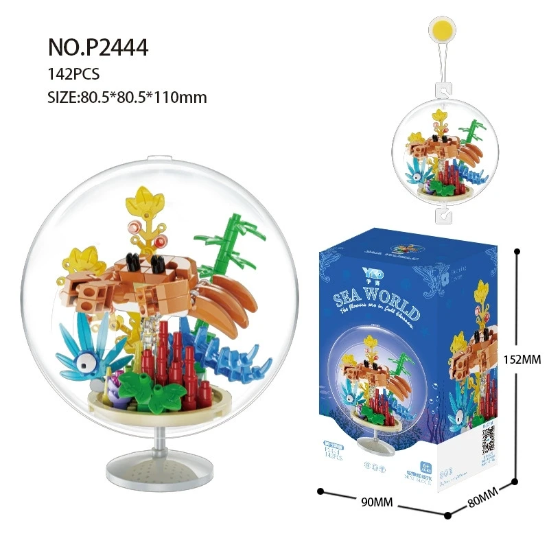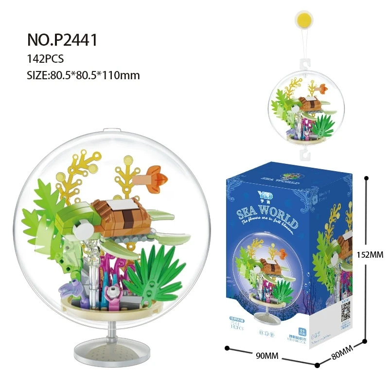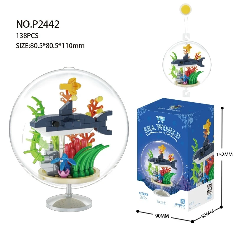 Ocean Pendant Transparent Ball Marine Animals Turtles Dolphins Fish Octopus Building Blocks Kit Bricks Model Kids Toy Children