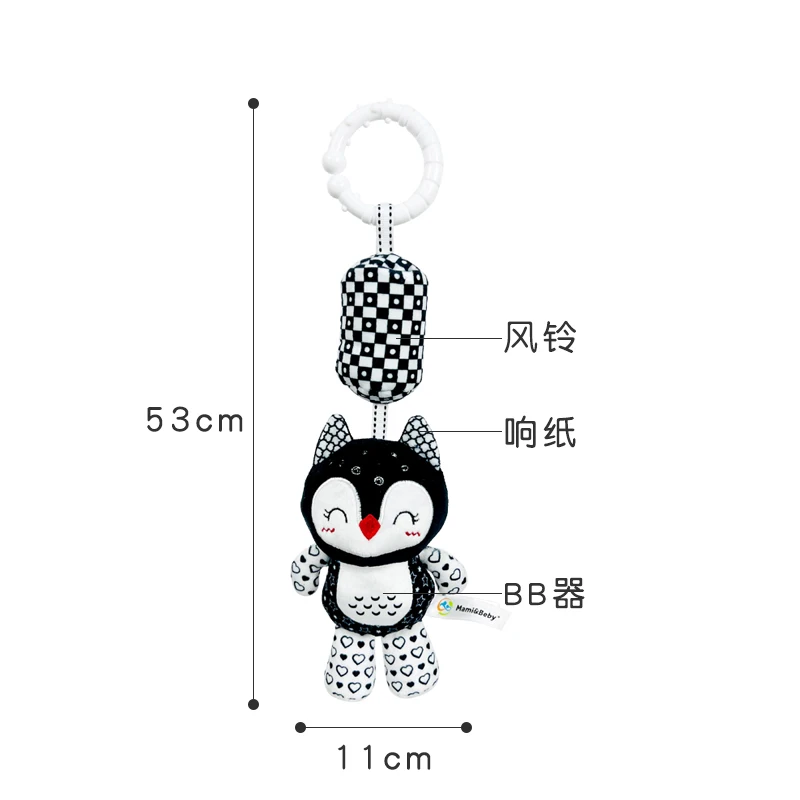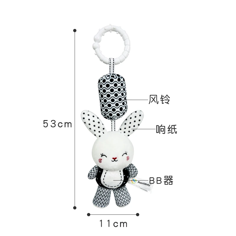 Baby Rattles Stroller Bed Crib Hanging Bell Plush Doll Infant Newborn Black White Visual Grab Ability Training Toy for Bebe Gift