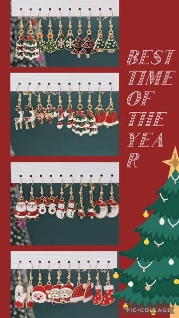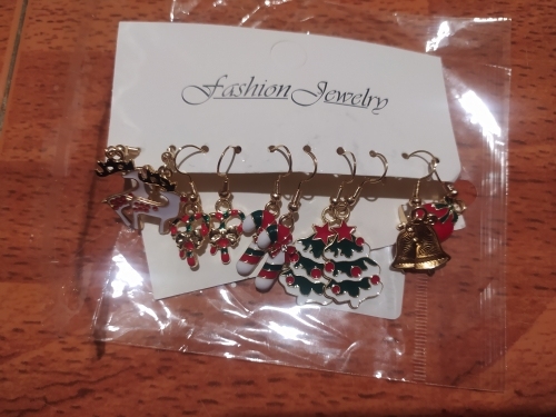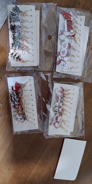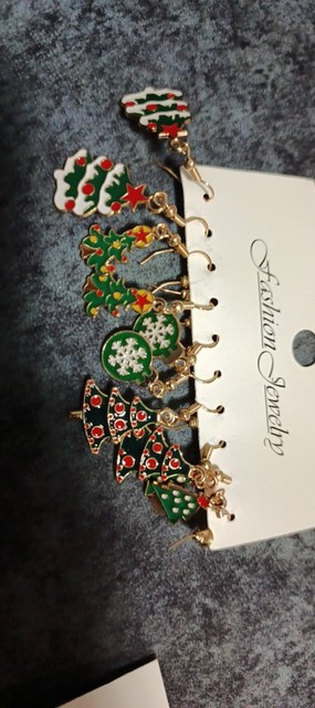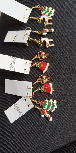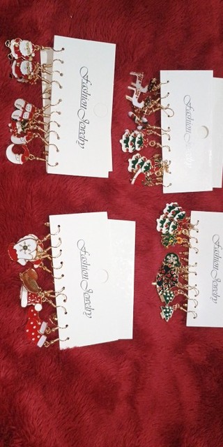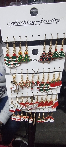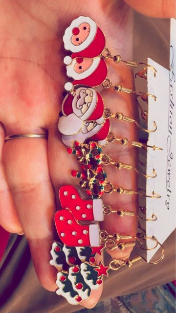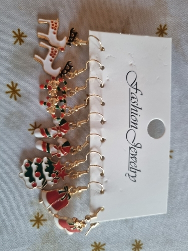 10/40pcs New Christmas Set Cross border Hot Selling Cartoon Dripping Oil Elk Santa Claus Christmas Tree Earrings for Women