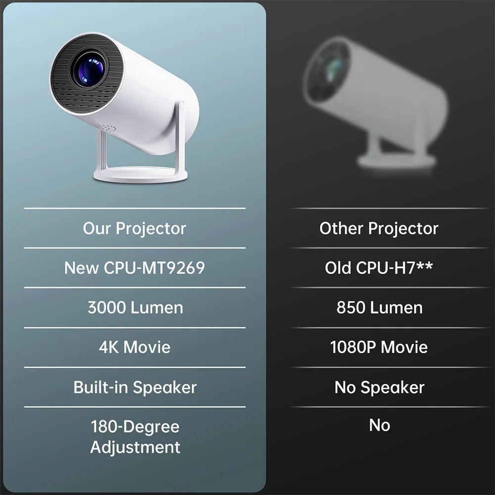 It projector is compact and lightweight, the product weight is only 280g height 155mm easy to carry.