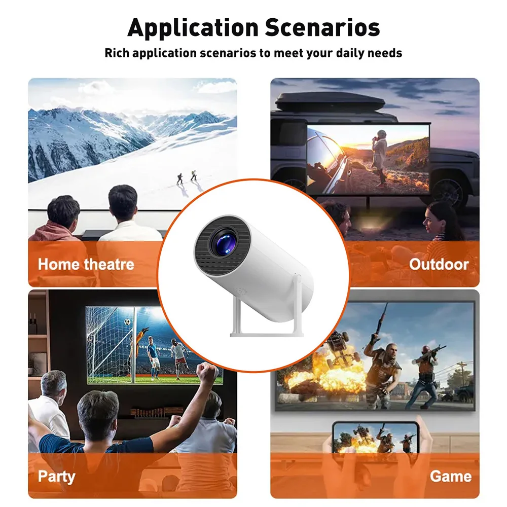 Supports multi-scenario use,such as home theatre, outdoor activities provide provide mobile entertainment and display platform, office learning, etc..