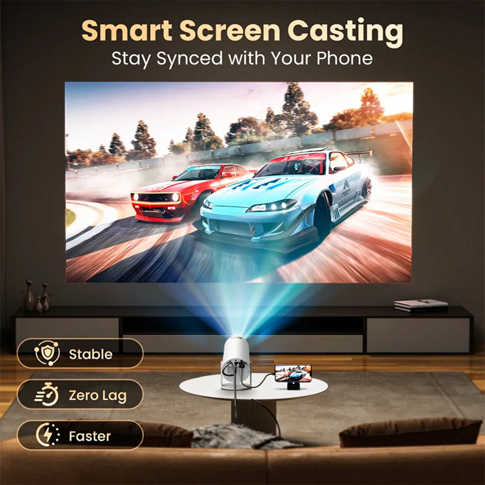 1080P Mini Portable Projector with Speaker, For Android 11 Dual 200 ANSI, Suitable for Home and Outdoor, with Remote Control
