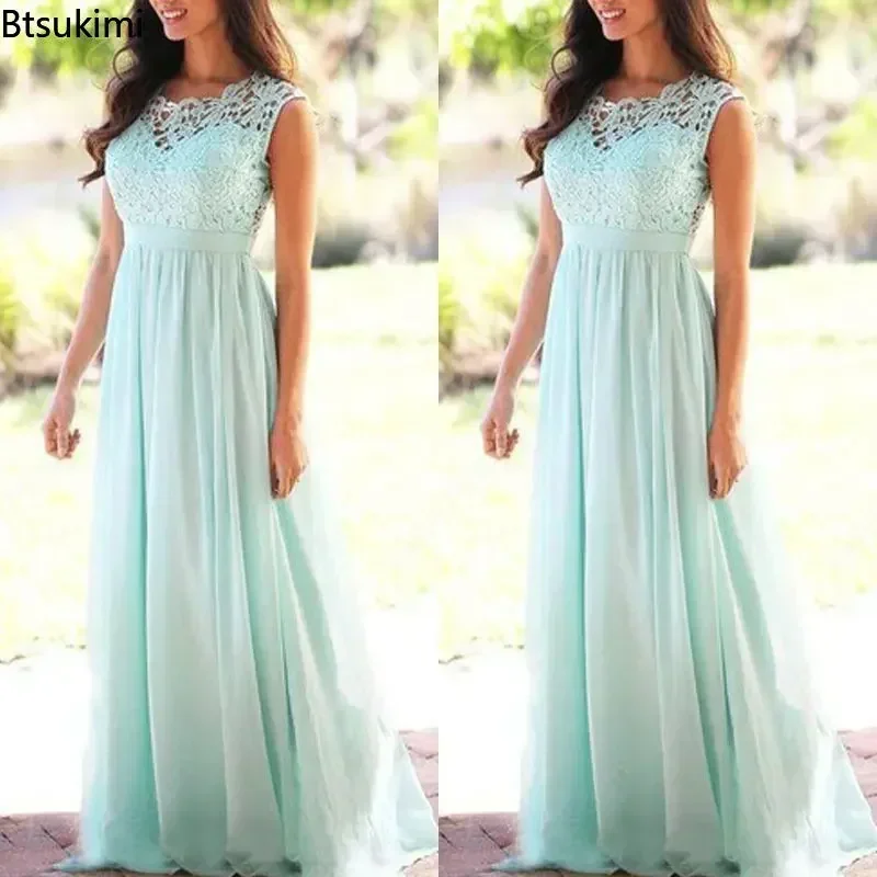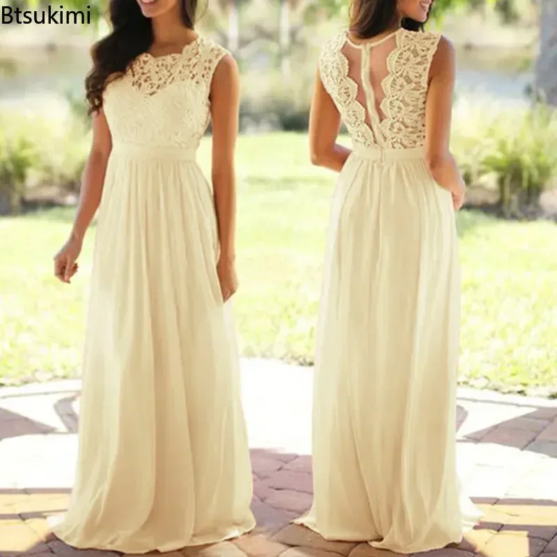 2025 Women Elegant Lace Patchwork Long Dress Female Solid Wedding Bridesmaid Party Maxi Dress Robe Femme Vestidos Dresses S-5XL